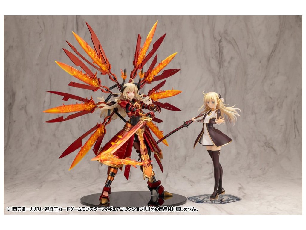 A szobor, amire a párbajozók vártak, Sky Striker Ace - Kagari, végre színre lép! A Yu-Gi-Oh! kártyajáték 25. évfordulójának megünneplésére több cég összefogott, hogy egy Yu-Gi-Oh! CARD GAME Monster, amely a szörnyek különböző generációit mutatja be. A cég Sky Striker Ace sorozatához csatlakozik a Kotobukiya Sky Striker Ace - Kagari! Bár a szobor ugyanolyan méretarányú, mint a Sky Striker Ace - Raye és a Sky Striker Ace - Roze, ez a darab mennyiségben messze felülmúlja az előzőt, így egy különleges megjelenést eredményez. A kártyán nem látható finom részletek precízen lettek visszaadva, mint például a páncélelemek, a fegyverek, a háton lévő szárnyak. A Sky Striker Ace - Raye és a Sky Striker Ace - Roze figurákkal együtt megjelenítve még inkább életre kelti a Sky Striker Ace sorozatot. Akár versenyzel, akár nem, tartsd őt a közeledben!Kiegészítő paraméterek