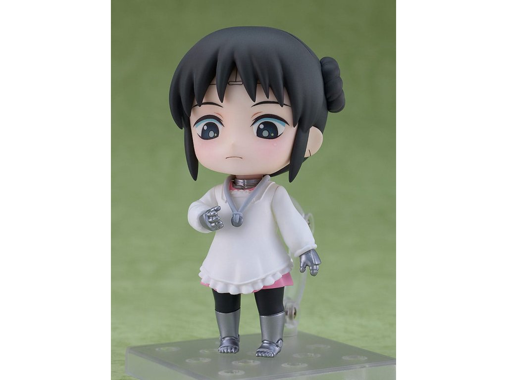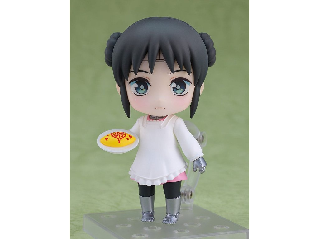 "Takuma-sama, az omurice készen áll." A "My Wife Has No Emotion" című animéből érkezik Nendoroid Mina, a házimunka robot! Cserélhető arcok: - Normál arckifejezés - Kemény arc. Választható alkatrészek: - Omurice - Jegygyűrű - Mamoru-kun - Egyéb választható alkatrészek a különböző pózokhoz.