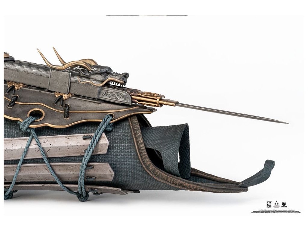 "Árnyékok vagyunk, akik a fényt szolgáljuk." Legyél halálos shinobi Assassin az Assassin's Creed Shadowsból Naoe rejtett pengéjének 1/1-es méretarányú másolatával! Az Iga legendás shinobi vezetőjének, Fujibayashi Nagatónak a lánya, Naoe éles, halálos és kész megvédeni a népét. Ez a hordható és funkcionális Hidden Blade replika mind Tanto, mind Hidden Blade módban viselhető, így ideális az Oda Nobunaga erői elleni harchoz - Méretek: 42 x 16 x 14 cm - Anyagok: PVC