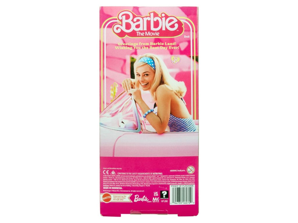Üdvözöljük Barbie Landből! Ez a Barbie® baba időtálló sziluettet visel egy aranyos ruhában, amelyet a Barbie™ filmben szereplő karakterének egyik ikonikus megjelenése ihletett. Rózsaszín kockás ruhájával, százszorszép nyakláncával és pasztellszínű cipőjével készen áll arra, hogy minden idők legjobb napját töltse Barbie Landben! A Margot Robbie mintájára készült Barbie babát a rajongók és gyűjtők nagyszerű ajándéknak szánják. A baba nem állhat önállóan. A színek és a díszítések változhatnak.Megjegyzés: A csomagoláson található illusztrációk csak példaként szolgálnak, és eltérhetnek a tényleges csomagolástól a design vagy a nyelvezet tekintetében.Kiegészítő paraméterek