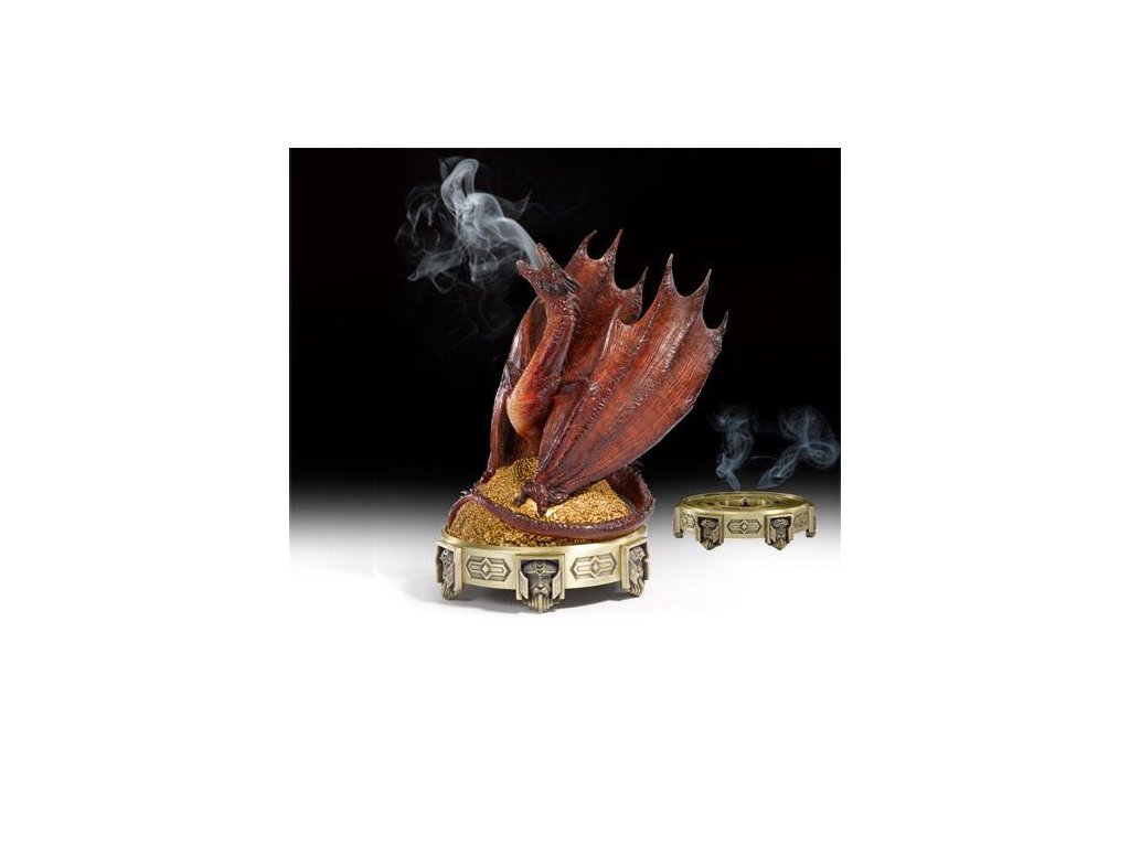 A Noble kollekcióból származik ez a finoman részletezett és kézzel festett füstölőtartó. Egyszerűen helyezze a füstölőt a fém talapzatba, és nézze, ahogy a füst kiszabadul a Shmaug szájából. A füstölő nem tartozék!Kiegészítő paraméterek