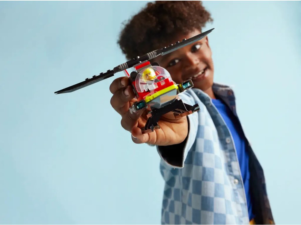 - Fantáziadús játék- A gyerekek beültethetik a pilótát a kinyitható pilótafülkébe, forgathatják a rotorokat, és kilőhetik a helikopteren lévő LEGO® vízágyúk vízfunkcióit.