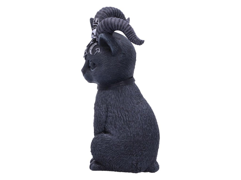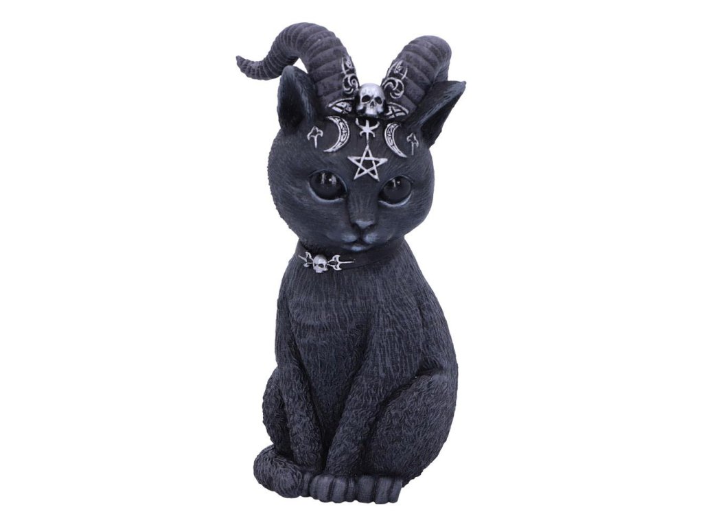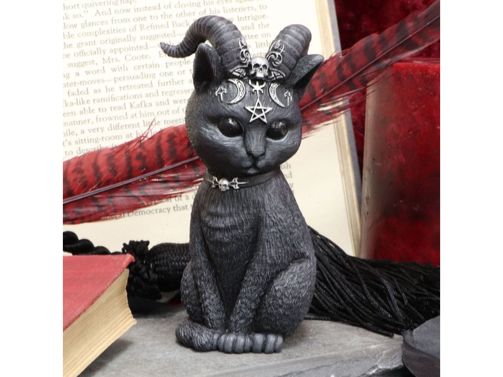 Borzasztóan aranyos szárnyas macskafigura. Apró koponyákkal, pentagrammákkal és holdakkal díszített - Kézzel festett - Anyaga: gyanta - Mérete: kb. 11 cm.Kiegészítő paraméterek