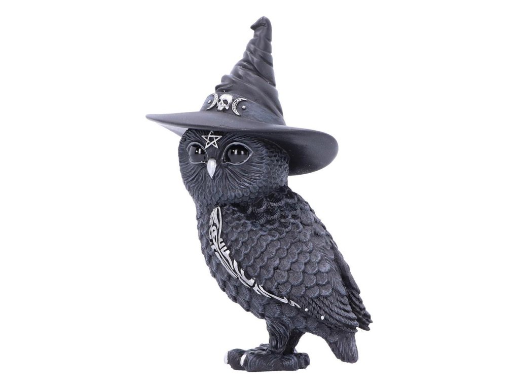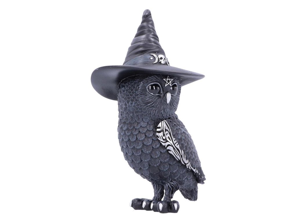 Nagyon aranyos bagoly szobor. Apró koponyákkal, ötágú pontokkal és holdakkal díszített - Kézzel festett - Anyaga: gyanta - Mérete: kb. 13,5 cm.