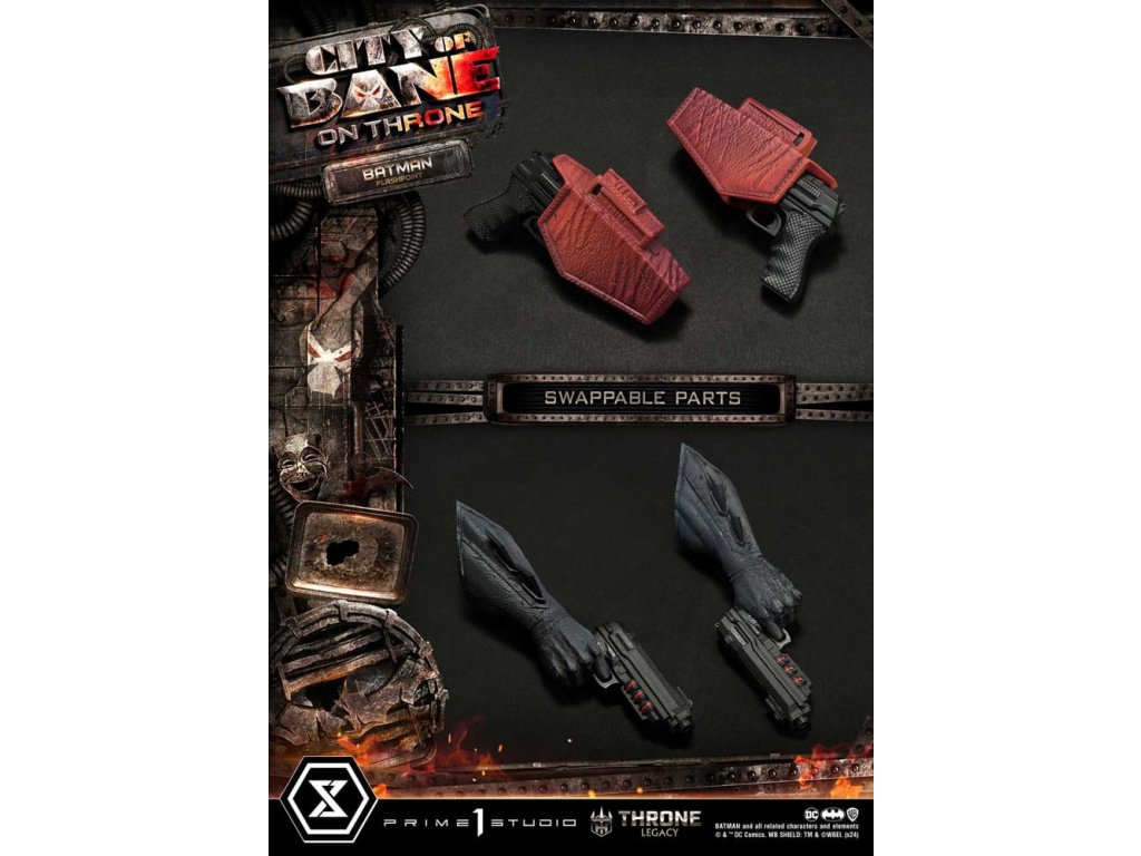 "Ne kövesse el ezt a hibát. Én nem vagyok valami ostoba gazember vagy ügyetlen tiszt. Nem vagyok egy bukásra ítélt trónváltó. Én vagyok Batman." A Prime 1 Studio büszkén mutatja be a Throne Legacy Collection újabb várva várt kiegészítését: a DC művészével, Carlos D'Andával együttműködve az 1:4 TLCDC-06S Flashpoint Batman Bonus Version szobrot a Batman képregényekből! Lépj be Gotham City csavaros és alternatív valóságába a Flashpoint idővonal Batmanjével. Ebben az idősíkban Thomas Wayne veszi át Batman köpenyét, miután fia, Bruce Wayne halála tragikus, a történelmet megváltoztató eseményben bekövetkezett. Ebben a valóságban Thomas Batman sötétebb és brutálisabb változatává válik, akit a gyász és a bosszú hajt. Carlos D'Ando, a DC művészének koncepcióterve alapján a Prime 1 Studio képzett művészei keltik életre a sötét lovagnak ezt a változatát. Gondosan kidolgozva, hogy megragadja a Flashpoint Batmanjének lényegét, a meggyötört és kérlelhetetlenül elszánt Batmant. 60 cm magas, felegyenesedett és fenyegető testtartásban, ökölbe szorított kézzel. Szobrászaink és festőink nagyszerű munkát végeztek Flashpoint jellegzetes öltözékének minden egyes részének textúrázásával, ami vizuálisan is megragadóan eltér a hagyományos Batman-jelmeztől. A fejfedő szorosan az arcára van húzva, és a Flashpoint világának kemény valóságát tükröző durvább és kopottabb megjelenésű. A ruha, egy sötétebb árnyalat, élénkpiros akcentusokkal keverve az ikonikus denevér szimbólum alatt a mellkasán, és egy bíborvörös öv tele kütyükkel és fegyverekkel. A káoszba borult világban a remény szimbóluma, Batman Flashpoint az igazságosság jelzőjeként áll, készen arra, hogy szembenézzen a Gotham Cityt sújtó legsötétebb fenyegetésekkel. Ha megrendeled a bónusz kiadást a hivatalos online áruházunkból vagy bármelyik hivatalos forgalmazónál, két cserélhető kézdarabot kapsz, amelyek mindkét kezedben egy-egy pisztolyt tartanak, valamint cserélhető pisztolytáskákat a comb mindkét oldalán. Ne hagyd ki a lehetőséget, hogy ezt a kiemelkedő remekművet a gyűjteményedbe illeszd, és rendeld meg a TLCDC-06S Flashpoint Batman bónusz változatot még ma! Termékleírások:- A szobor mérete körülbelül 23,6 hüvelyk magas [H:60cm W:43cm D:20cm] - Batman témájú alap - Két (2) cserélhető szabad kézfej - Két (2) cserélhető pisztolyt tartó kézfej [BONUSZ] - Két (2) cserélhető pisztolytáska [BONUSZ] - Két (2) cserélhető pisztolytáska [BONUSZ]Kiegészítő paraméterek