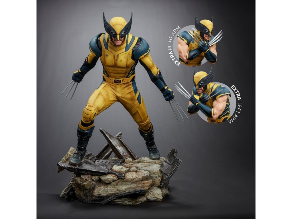 Ez a "Deadpool 3" című filmből származó részletes szobor kiváló minőségű, 1/4 méretarányú polisztonból készült, és körülbelül 51 cm magas. Kidolgozott talapzattal és cserélhető alkatrészekkel érkezik egy nyomtatott dobozban. Méretek.Kiegészítő paraméterek