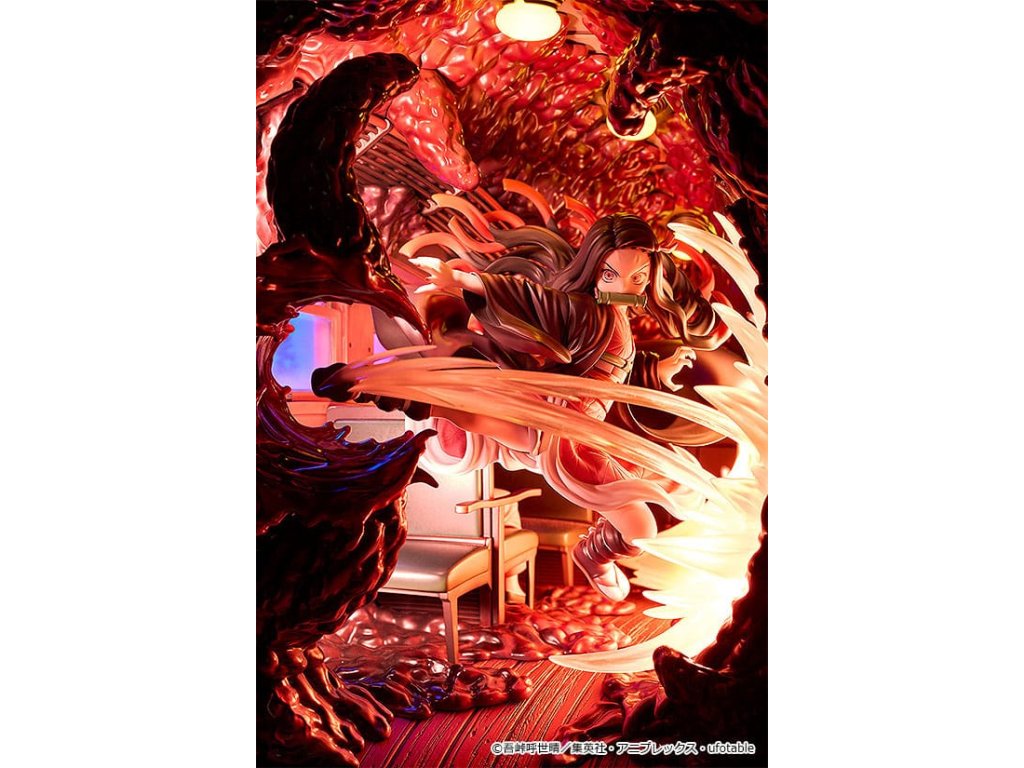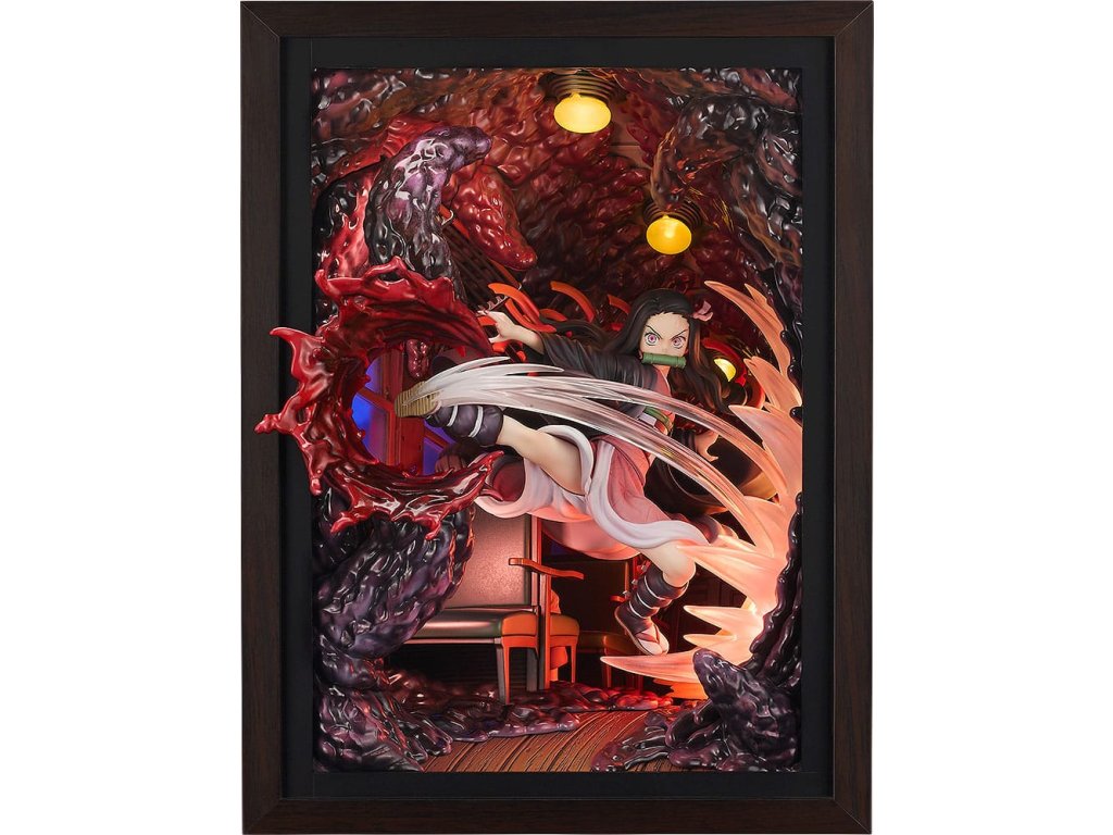 Nezuko a Mugen-vonaton harcol. A 'Demon Slayer: Kimetsu no Yaiba' című anime sorozatból érkezik egy méretarányos szobor Nezuko Kamadóról! A figura Nezukót ábrázolja a Mugen Trainben zajló heves küzdelemben, a jelenet hátterét is beleértve. A jelenet hangulatának tökéletes megragadására törekedve a jelenet hátterét úgy építették fel, hogy az körülvegye a szobrot. A szobor mélysége lehetővé teszi, hogy a fény behatoljon a térbe, így egy teljesen más világot teremtve, mint a hagyományos figurák. Az eredeti Tanjiro Kamado világítása: Hinokami Kagura Dance (külön megvásárolható) fényét tovább fokozták, így egy olyan alkotás jött létre, amely messze túlmutat egy egyszerű szobron. Az USB tápkábel a tartozék. *A világítás használatához csatlakoztassa az USB-kábelt egy USB-s áramforráshoz.Kiegészítő paraméterek