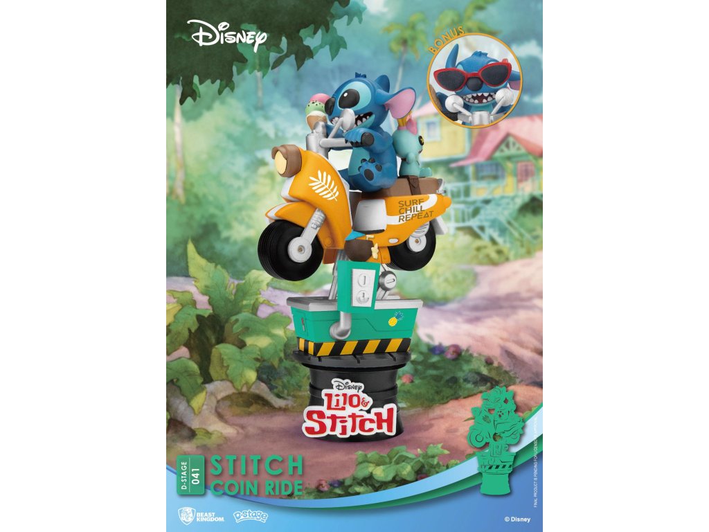 A Beast Kingdom, az "Élményszerű Szórakoztató Márka" ismét büszkén mutatja be legújabb dioráma kollekcióját, a "Staging Your Dream"-et, melyben három pajkos, mégis bájos karaktert láthatunk! Stitch, aki komolyan túlméretezett napszemüveget visel, saját színpadot kap egy igazi nyári hangulatot idéző, 626-os számmal jelölt kísérleti lényt ábrázoló lenyomatot tartalmazó rendszámtáblával. Stílusos retro robogót vezet, amelyhez szörfdeszka is tartozik, kezében fagylaltot tart, mögötte pedig kedvenc Scrump babája ül. Ezt a nyári Stitchet nem lehet kihagyni! Minden modell alapját a megfelelő filmek címei vastag betűkkel nyomtatott betűkkel, nagy figyelmet fordítva a részletekre, és számos vicces húsvéti tojással rendelkezik. Megtalálod mindet? A PVC dioráma körülbelül 16 cm magas, és átlátszó műanyag buborékcsomagolásban kerül forgalomba.Kiegészítő paraméterek