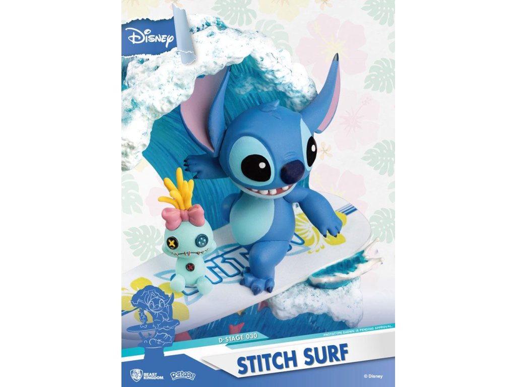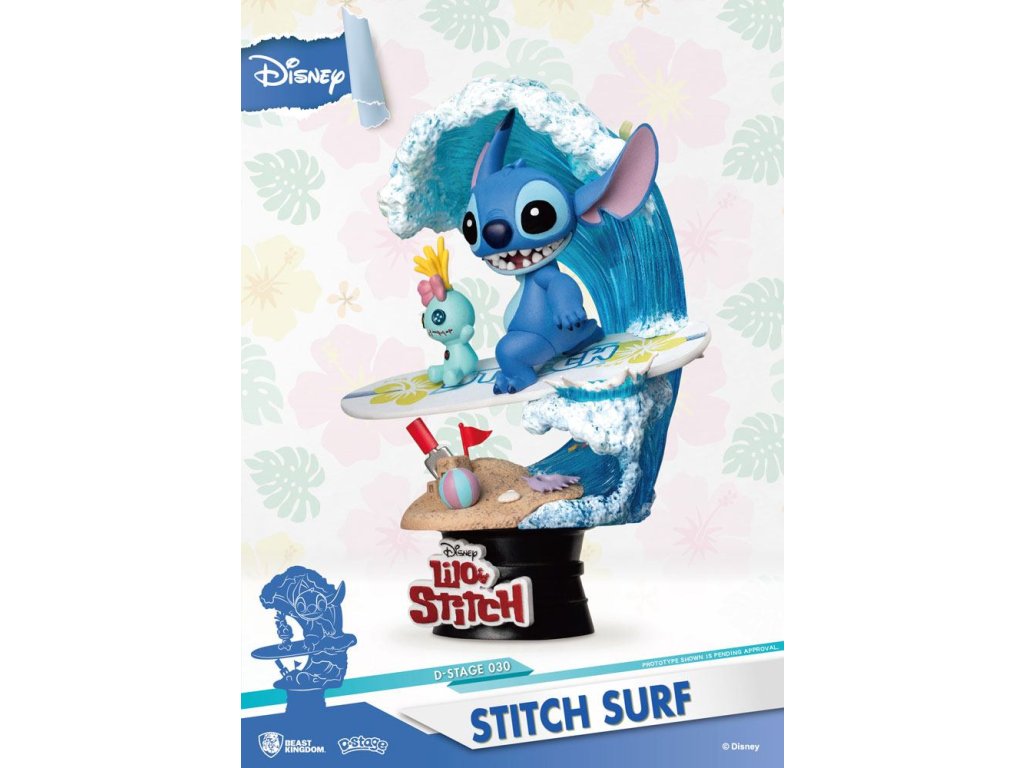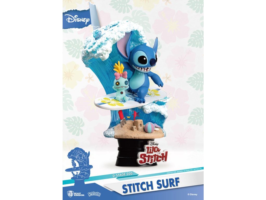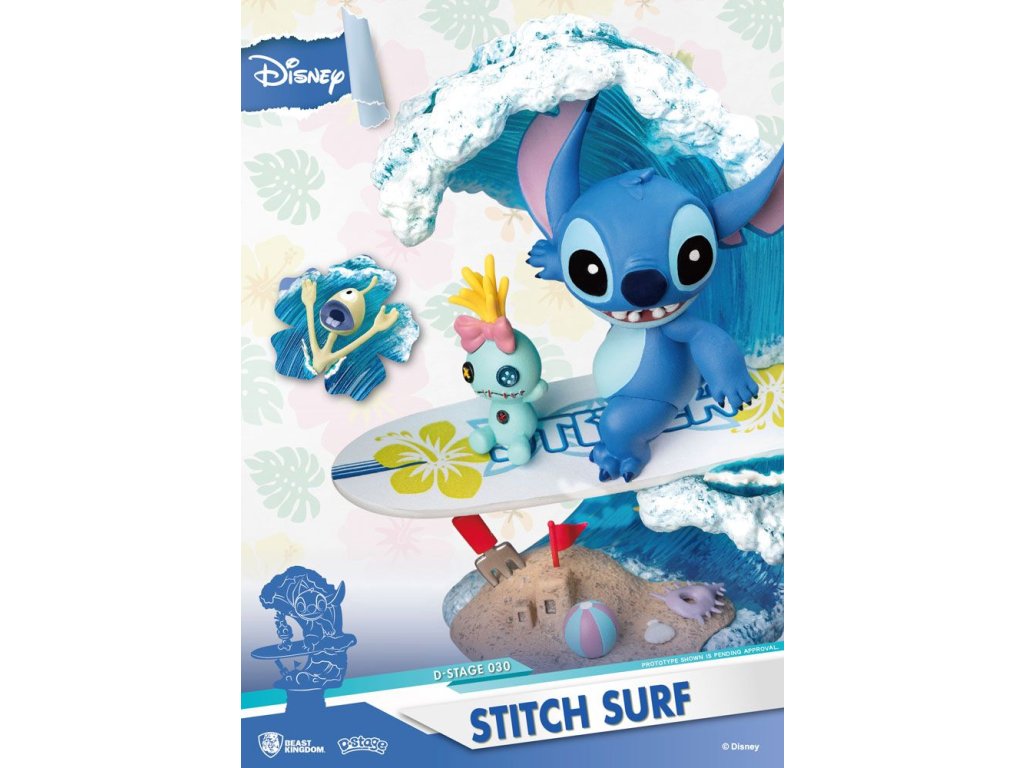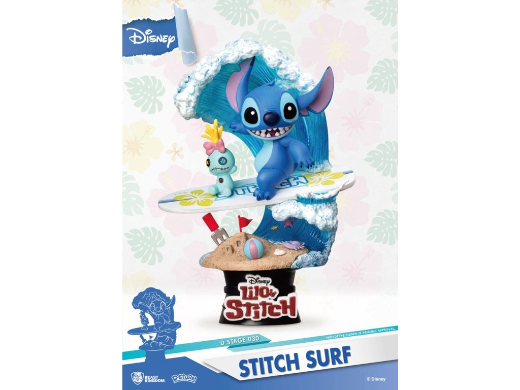 Disney nyári sorozat D-Stage PVC dioráma Stitch Surf 15 cm-es dioráma