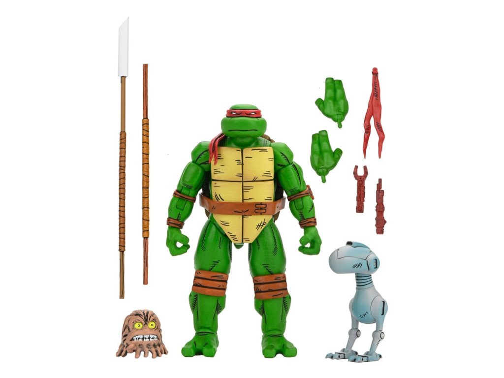 A "Visszatérés New Yorkba" című történet alapján a Tini Mutáns Nindzsa Teknőcök képregénysorozatban Eastman & Laird a Mirage Studios-tól! Ezek a 7 hüvelykes méretarányú akciófigurák teljesen csuklósak a nagyszerű nindzsa pózokért. Raphael cserélhető kezeket, extra bekötött kart, Casey Jones maszkot, sais-t, csuklyát, fegyvert és extra maszknyakkendőt tartalmaz! Különleges képregénycsomagolásban, Kevin Eastman fantasztikus grafikáit bemutató ablakkal. Minden figura külön-külön kapható.Kiegészítő paraméterek