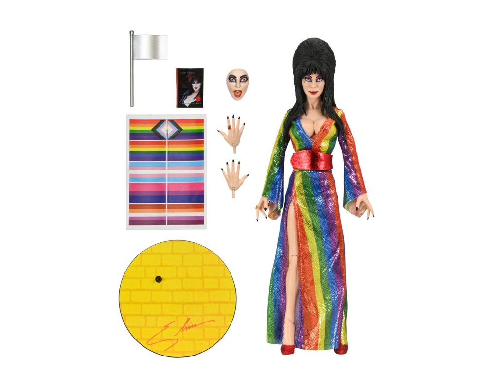 Ünnepeld a Pride hónapot Elvirával, a sötétség úrnőjével! Az ördögien bájos Cassandra Peterson több mint 40 éve játssza Elvira szerepét kecsesen, humorosan és nem kevéssé táborosan. A NECA büszkén mutatja be ezt az "Over the Rainbow" Elvira figurát, amely a horror és queer ikont egy eddig soha nem látott, csillogó szivárványos ruhában ünnepli a gyűjteményedben. Az eredeti szabású ruhával, a csillogó rubinvörös magassarkúval és a sárga tégla kijelzővel biztosan nem Kansasben van már! Ez a teljesen csuklós, 20 cm-es akciófigura új, cserélhető arctechnikával rendelkezik, két cserélhető arckifejezéssel és kezekkel, köztük vadonatúj kezekkel, amelyekkel Elvira jellegzetes pózát tudod reprodukálni! Tartozik hozzá egy kiegészítő könyv, egy Peterson, a Kegyetlenkedj, Elvira emlékkönyv és egy kétoldalas zászló 10 matricával a testreszabáshoz és az egyedi büszkeséged kifejezéséhez! Gyűjtők számára alkalmas ablakkal ellátott csomagolásban.