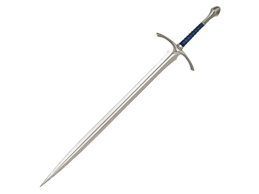 A Glamdring a kiváló elf kardforgatás kiváló példája, egy elf királyhoz méltó fegyver. Gandalf kisajátította a Glamdringet, és a kardot az Ereborért folytatott küldetés során használta, a Ködhegység orkjai ellen, később pedig az Egy Gyűrű elpusztítására irányuló küldetés során. A nagykard Gandalfnál maradt Középföldén töltött napjainak végéig. Ez a hitelesen részletes replika egy valódi filmes kellék reprodukciója, amelyet az új-zélandi Weta Workshop készített, és a HOBBIT: EGY VÁRATLAN ÚTRA című filmben használtak. A United Cutlery, a minőségi filmreplikák gyártásának úttörője, aprólékos munkával, a legkiválóbb anyagok és kézműves munka felhasználásával alkotta újra a kelléket. Nagy figyelmet fordítottak a részletekre. A Glamdring kard teljes hossza 120,96 cm, rozsdamentes acél pengével, tömör fém markolatrészekkel, kék drágakőutánzattal és valódi bőrrel bevont markolattal rendelkezik. Fából készült fali vitrinnel és eredetiségigazolással érkezik. Részletek: Teljes hosszúság: 120,96 cm, Pengehossz: 89,53 cm, Pengéjének anyaga: AUS-6 rozsdamentes acél, Markolat anyaga: dobozos fém, bőrbe tekert markolattal és drágakőutánzattal, Kijelző: Asztalos: Fa, faborítással és selyemnyomással. A termék mérete miatt további szállítási költségek merülhetnek fel. Ennek a költségnek a meghatározásához az Ön tartózkodási helye mellett a csomag tényleges méretét és súlyát is ismernie kell. Mindkettő jelenleg nem ismert, és lehet, hogy csak a termék raktárunkba érkezése után áll rendelkezésre.Kiegészítő paraméterek