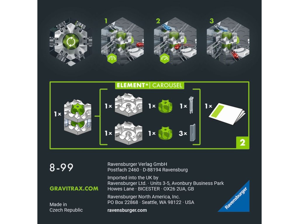 A Carousel akció-kiegészítő egy igazi többszintű kereszteződés, amelyet különböző nehézségi szintekre is beállíthatsz. A két szintet több be- és kijárat köti össze. Ráadásul egy utazás során többször is használható. A körhintába belépő golyók megállhatnak vagy elindulhatnak, három különböző irányba.