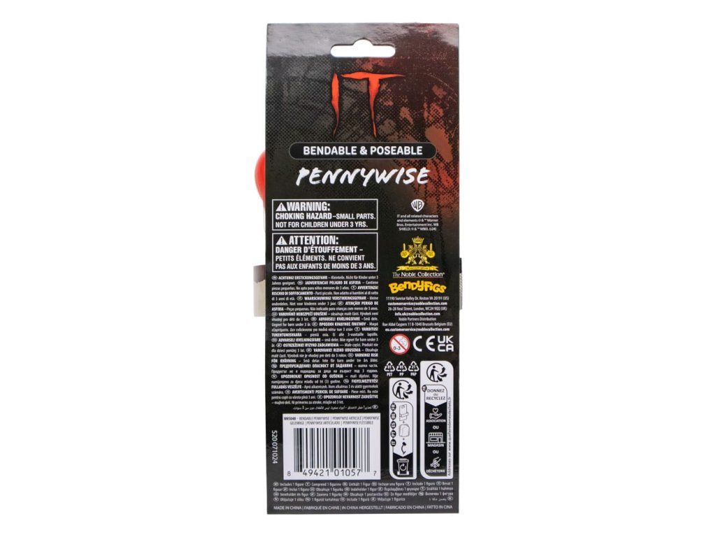 A Noble Collection örömmel mutatja be a Bendyfigs 17+ rugalmas figurák első figuráját, amelyet a modern horrorfilmek ihlettek, és amelyben Pennywise, az ősi gonosz egy rémisztő bohóc alakját öltötte magára, aki előszeretettel választja áldozatául a gyerekeket, mert őket könnyebb megijeszteni, mint a felnőtteket. Ez a lény a félelemből táplálkozik. Pennywise egy lufit hordoz, hogy a gyerekeket a karmai közé csalja. Mindegyik márkás displayen és négyszínű buborékkártyán érkezik, amelyek lehetővé teszik, hogy a polcra helyezzük őket, vagy akasztóra akasszuk őket. Mindegyik teljesen mozgatható figura körülbelül 7,5 hüvelyk magas.Kiegészítő paraméterek