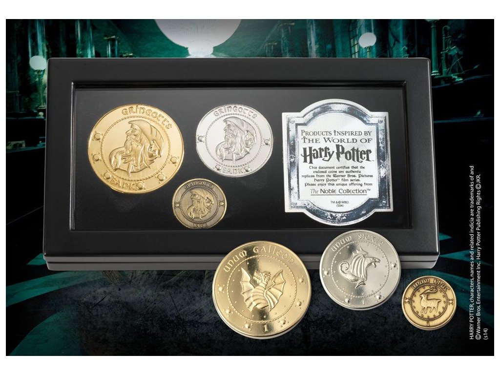 A Gringotts Bank érmekészlet gyönyörűen újraalkotott, és egy gyűjthető érmés borítékban van elhelyezve. Minden egyes Galleon, sarló és Knut egyedileg, részletgazdag kidolgozásban és 24k arany, ezüst vagy réz bevonattal készül.Kiegészítő paraméterek