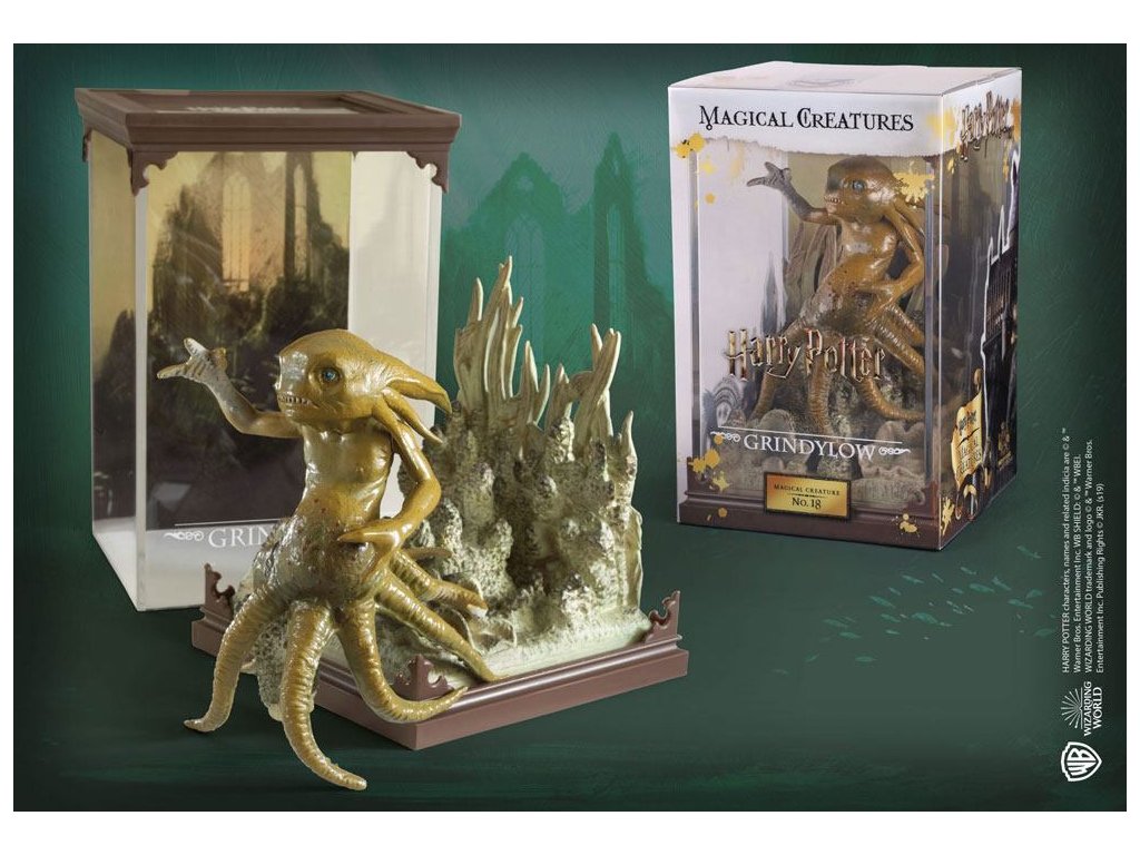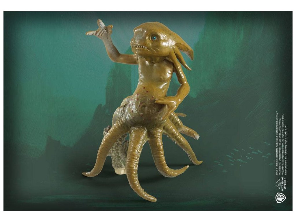 Kézzel festett műanyag dioráma a Grindylow-ról. A Grindylow-k nagyon agresszív vízidémonok, akikről köztudott, hogy a Roxfort fekete tavában élnek. Harry Potter a Három Varázsló Tornájának második feladata során találkozott Grindylowyval.Kiegészítő paraméterek