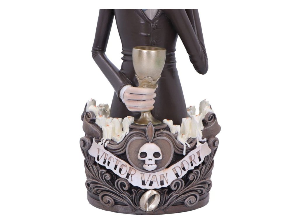 Fedezd fel a holtak földjét ezzel a hivatalosan licencelt mellszoborral, amely a Holtak menyasszonya Victorját ábrázolja. Victor Van Dortot ábrázolja, egy nem kívánt vőlegényt, aki egy titokzatos és hátborzongató világban találja magát. Ideges arckifejezését, kócos haját és ruházatának legapróbb árnyalatait is hűen rekonstruálták ebben a mellszoborban. A legfinomabb gyantából öntött, majd kézzel festett mellszobor a Holtak menyasszonya című film Victorjáról egy lenyűgöző darab, amely tiszteleg Tim Burton filmes remekművének öröksége előtt - Hivatalos Holtak menyasszonya emléktárgyak - A legfinomabb gyantából öntött.Kiegészítő paraméterek
