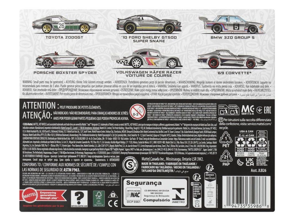 A Hot Wheels Zamac multipack hat 1:64 méretarányú autóval minden autógyűjteményt felpörget. Ez a gyűjthető csomag modern és retro öntött autókat is tartalmaz festetlen alapokkal, hogy a ZAMAC stílusát ünnepelhesse. A ZAMAC a cink, alumínium, magnézium és réz ötvözetét jelöli, amelyből a Hot Wheels modelleket öntik. A rajongóknak érdemes megnézniük a többi tematikus multipacket is (Streets of Japan, HW Legends és Euro Style), hogy kiegészítsék a gyűjteményt. Minden termék külön-külön kapható. A stílus, a szín és a design változhat.Kiegészítő paraméterek
