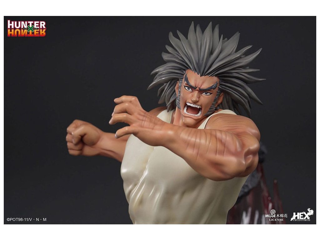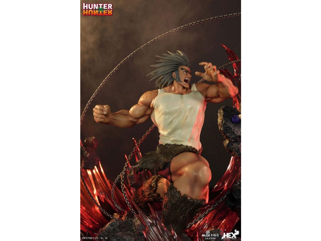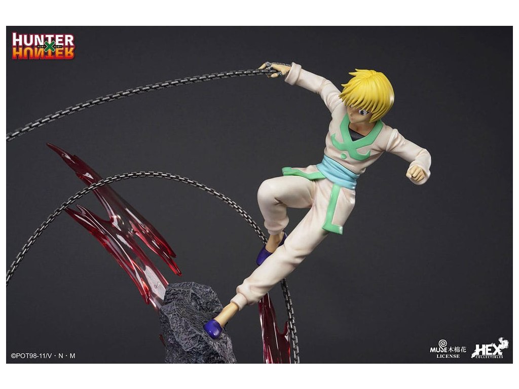 "Ez volt a legjobb lövés, amire képes voltál?" A Sideshow és a HEX Collectibles bemutatja az 1:6 méretarányú elit dinamikus szobrot, amely Kurapika vs. Uvogin a Hunter x Hunter animéből! A szobor 24" magas, és a Kurapika és Uvogin közötti csata ihlette. Kurapika célja, hogy megbosszulja klánját és visszaszerezze a megmaradt vörös szemeket a Fantom Társulattól. Kurapika narancssárga szegéllyel díszített kék tabardot visel, alatta fehér edzőruhát. Nyugodtan néz az ellenségére, mintha már előre megjósolta volna a csata győzelmét. Jobb kezében tartja a láncot, és a törött köveken állva hátradől, hogy elkerülje Uvogin közeledő támadását. Uvogin vad arckifejezéssel és cizellált medveöltözékkel vad arcképet vág, miközben újabb csapást nyújt ki. A kövek törmelékei, Nenu becsapódása és Kurapik lánca együtt alkotják az alapot, és fokozzák ennek a lélegzetelállító csatának a realizmusát. Hunter x Hunter rajongók, ne hagyjátok ki a lehetőséget, hogy még ma felvegyétek ezt a szobrot a gyűjteményetekbe! Méret: 61 x 59 x 54 cm. A tárgy mérete miatt további szállítási költségek merülhetnek fel. E költségek meghatározásához az Ön tartózkodási helye mellett a csomag tényleges méretének és súlyának ismerete is szükséges. Mindkét számadat jelenleg nem ismert, és előfordulhat, hogy nem lesz elérhető, amíg a termék meg nem érkezik a raktárunkba.Kiegészítő paraméterek