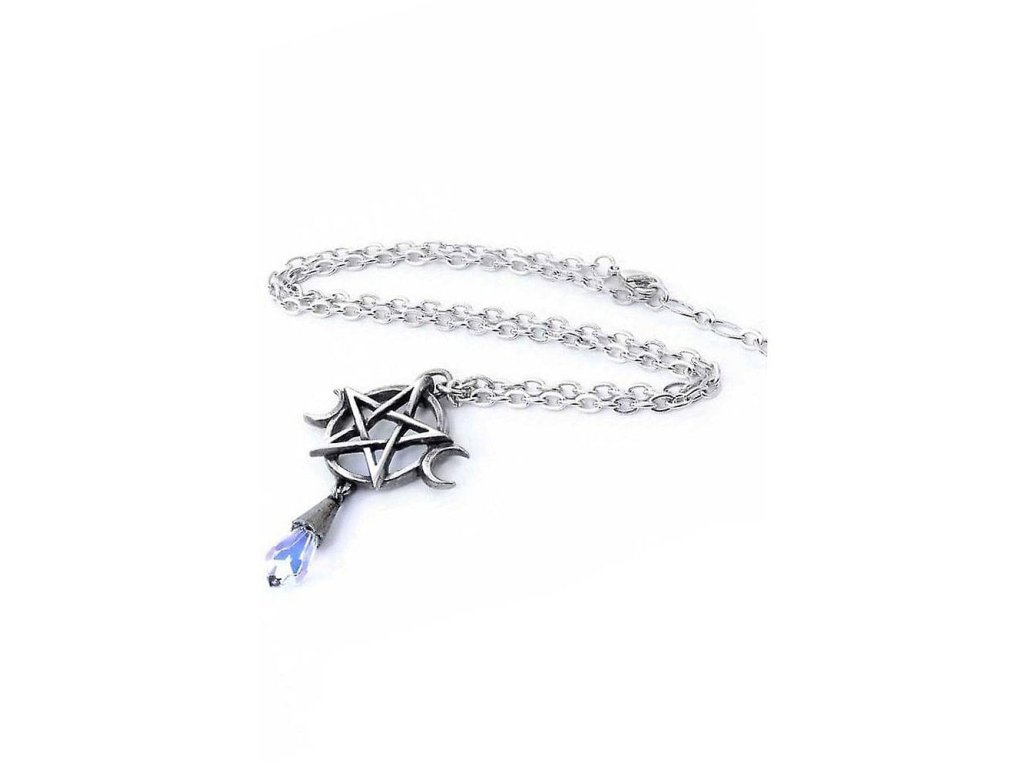 Az öt elem (tűz, víz, föld, levegő és szellem) pentagramma és a három istennő által képviselt három holdfázis kombinálásával a mágikus energia a kristályon keresztül összpontosul. Az amulett lenyűgözően megragadja a fentieket, de mindenekelőtt egy lenyűgöző ékszer, amely a nyakadat díszítheti. A szerelt kristály a Swarovski ékszerészműhelyből származik. A felületet patinával kezelték, ami lenyűgöző megjelenést kölcsönöz az ékszernek.