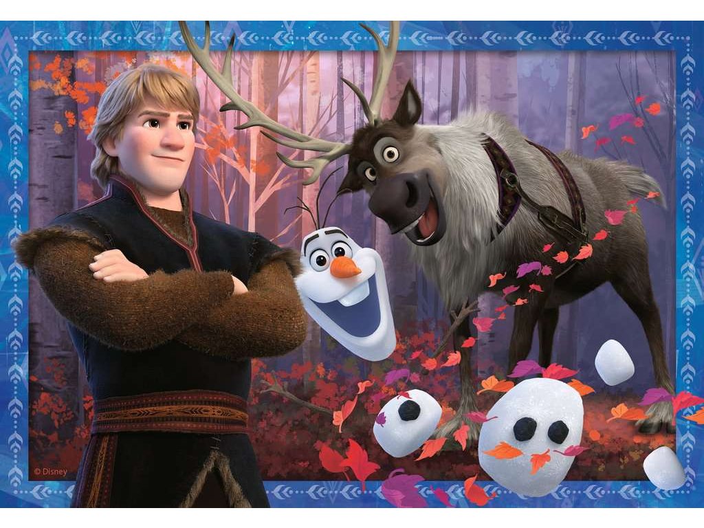 A Disney varázslatos Jégkirályság 2., amelyet a Hókirálynő története ihletett, jelenleg a világ legsikeresebb animációs filmje, köszönhetően a nagyszerű történetnek, a zenének és a lenyűgöző animációnak. Ez a kiváló minőségű kartonból készült kirakós készlet a film kulcsfontosságú szereplőit ábrázolja. Minden puzzle 24 darabra van vágva.