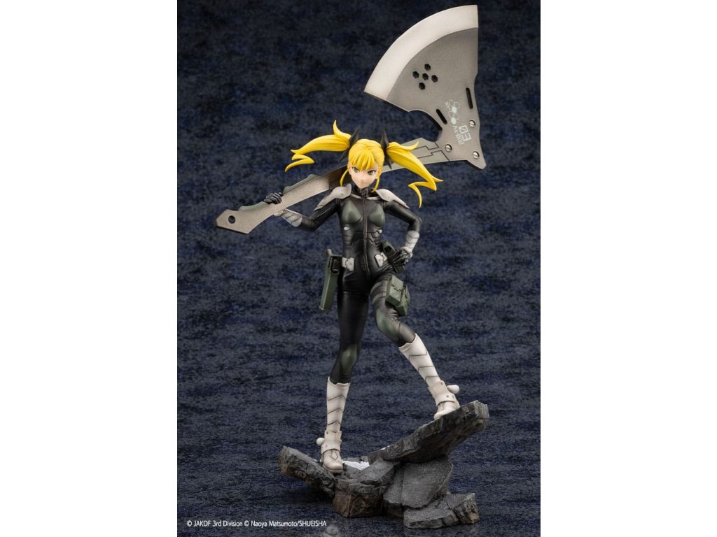 Kikoru Shinomiya csatlakozik az 1/8-as méretarányhoz! Kikoru Shinomiya a KAIJU #8 című animéből életre kel, és bátran áll, vállán a jellegzetes fegyverével. Ruháját gondosan megformázták, így a rajongók bármilyen szögből élvezhetik a Védelmi Hadtest tisztjének hangulatát. Különös gondot fordítottak arra, hogy az egyes anyagok textúrája megfelelően tükröződjön a festékben a nagyobb realizmus érzése érdekében. Jellegzetes kettős végtagjainak sziluettje fantáziadús dizájn, amelyet hűen újraalkottak. Impozáns fegyverét magasan az alakja fölött tartja, ami még lenyűgözőbbé teszi a látványt. Ez a figura minden KAIJU #8 rajongó számára kötelező darab! Add hozzá a gyűjteményedhez még ma a Kaiju No. 8, Kafka Hibino, Reno Ichikawa, Mina Ashiro és Soshiro Hoshina figurákkal együtt. *Ezt a terméket hivatalosan 5.13-tól 5.20-án JST 21:59-ig kínálják exkluzív előértékesítésként a KOTOBUKIYA ONLINE SHOP-ban és a tengerentúli forgalmazóknál. Az általános előrendelések az összes többi forgalmazó és bolt számára JST 5.21-én kezdődnek. *A KOTOBUKIYA Tachikawa, Akihabara és Nipponbashi (Osaka) üzleteiben az előrendelések 5.21-én kezdődnek.Kiegészítő paraméterek