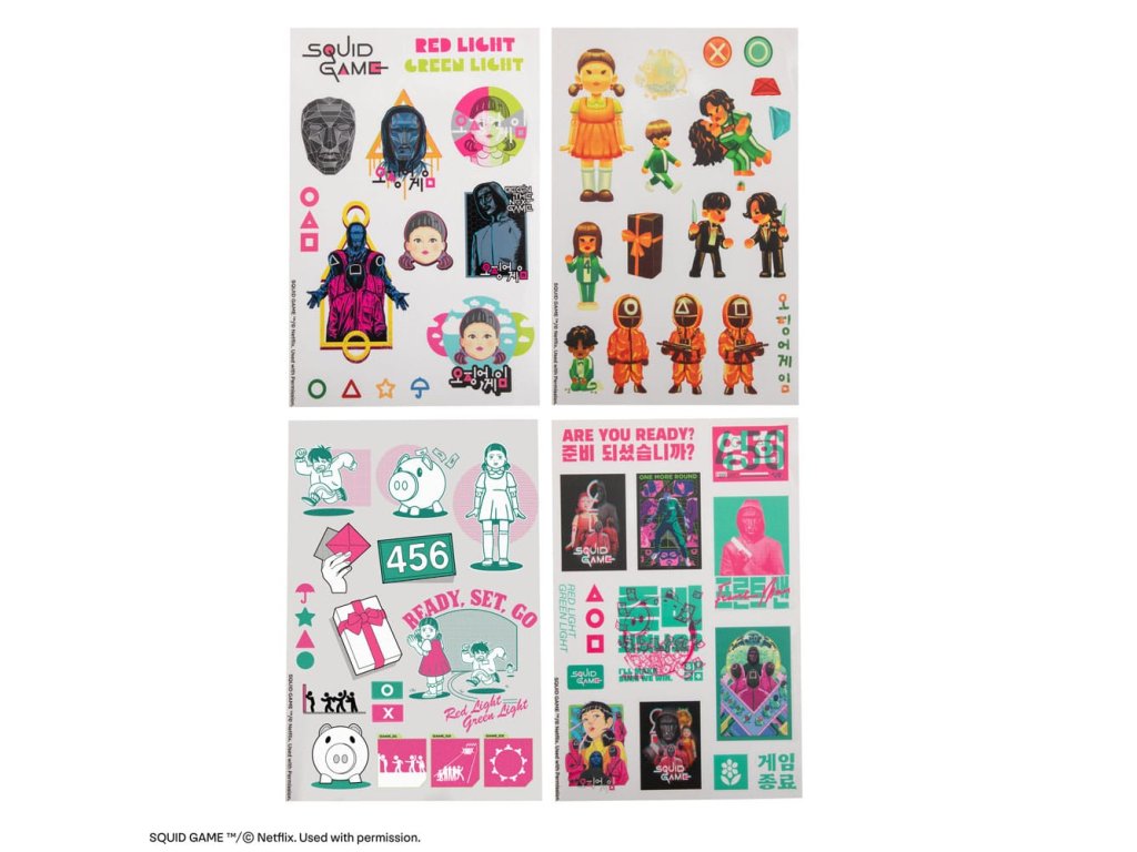 Ez a csomag hivatalosan engedélyezett matricákat tartalmaz a "The Octopus Game" című filmből.Kiegészítő paraméterek