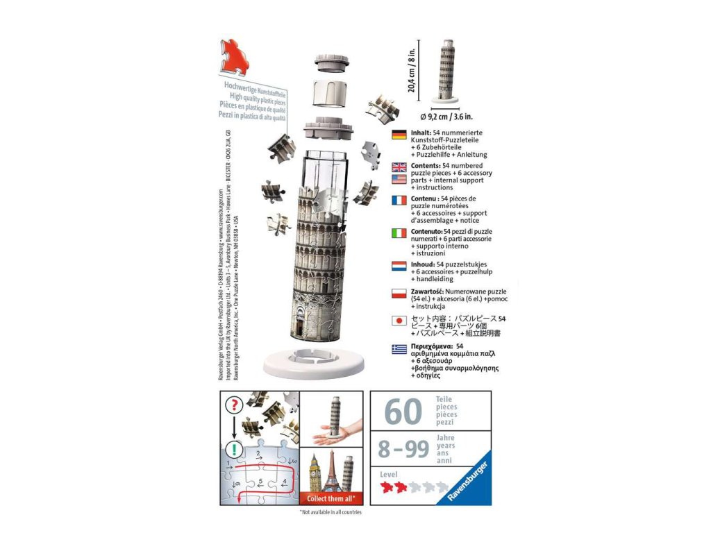 Bukik vagy nem esik? Nem az! Legalábbis akkor, ha a legendás pisai tornyot és annak lejtőjét 3D puzzle-ként magad építed meg. Ettől kezdve a világ leghíresebb ferde épülete örökre az Ön otthonában lesz - és a cappuccino még jobb ízű lesz a jelenlétében.