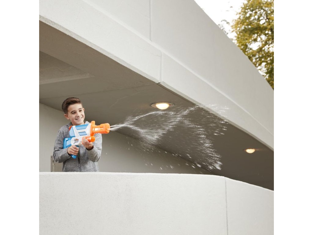 Lőj ki 2 egymásba fonódó vízsugarat a Nerf Super Soaker Twister vízipisztolyból! Indulj el egy kis vizes szórakozásra ezzel a Super Soaker blasterrel felszerelve. Amikor pumpálod a fogantyút, a henger a hordó csúcsán elfordul, és egy dupla vízhélixet hoz létre, amely lezuhanyozza az ellenfeledet! A Water Twister Blaster Blasterrel vizes vízi csatákhoz egy nagy adag vizes mókát adhatsz. Könnyű megtölteni és könnyű lőni. Nyissa ki a kupakot és töltse meg a tartályt, zárja be a kupakot és pumpálja meg a fogantyút. Vegyél részt szabadtéri vizes játékokban ezzel a Nerf Super Soaker blasterrel, amely egymásba fonódó vízsugarakat lő! A tartály kapacitása 1094 milliliter. A Nerf Super Soaker márka 1989 óta a feneketlen szórakozás forrása, és senki sem menekülhet a vizes düh elől! Indulj megalkuvást nem ismerő vízi csatákba a Nerf Super Soaker blasterrel felfegyverkezve!