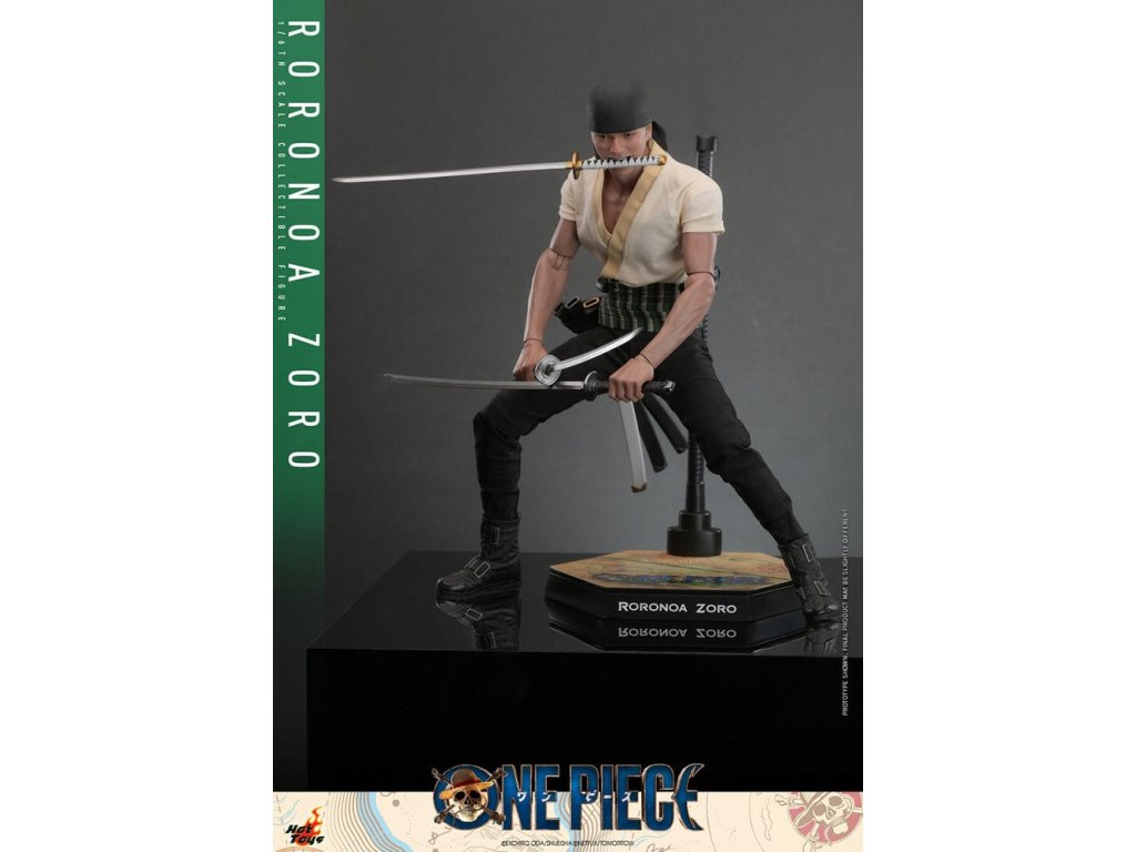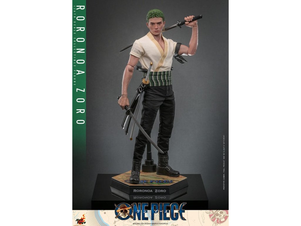 A One Piece világában egy karakter kiemelkedik a többiek közül az erő, a hűség és a kardforgatás terén. Ez az ember a Szalmakalap-kalózok nem hivatalos első tisztje, az ifjú Monkey D. Luffy jobbkeze, Roronoa Zoro. A népszerű manga élőszereplős adaptációjának egyik legkedveltebb karaktereként Roronoa Zoro a kalandok során fokozatosan fejleszti ambícióit. a Netflix One Piece című sorozatán alapuló Monkey D. Luffy figura debütálása után a Sideshow és a Hot Toys a kalózcsapat egy újabb tagját hozza el - a hatodik méretarányú Roronoa Zoro gyűjtőfigurát. Ez a Roronoa Zoro akciófigura nagy pontossággal örökíti meg a két cserélhető fejet különálló forgó szemekkel, így beállíthatod őt komoly arckifejezéssel vagy az ikonikus kinézettel, hátrakötött hajjal, fekete kendővel és karddal a szájában. Jelmeze fehér köntössel, fekete nadrággal és kardhüvellyel ellátott övvel teljes. Három karddal rendelkezik, amelyek lehetővé teszik a kardforgató erőteljes támadási stílusának újrateremtését egy, két és három karddal. A figura egy csomózott kendőt és egy állványt is tartalmaz!Ez a Roronoa Zora figura a One Piece gyűjteményed nélkülözhetetlen gyűjtői darabja.Kiegészítő paraméterek