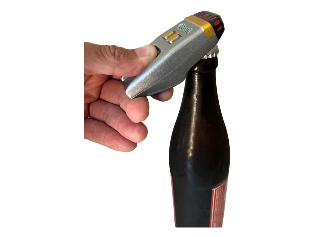 Akár otthon vagy küldetésen vagy távol az otthonától, ez a palacknyitó készen áll arra, hogy lenyűgözzön minden palackot, ami elérhető közelségbe kerül! Vigyázz, a túl sok közvetlen ütés a legtöbb humanoidnál az eszméletvesztés pillanatait okozhatja! Ez a robusztus palacknyitó tömör fémből készült, és a Star Trek | A következő generációból ismert Cricket Phaser alapján készült. Méret: 2 x 5 x 10 cmKiegészítő paraméterek
