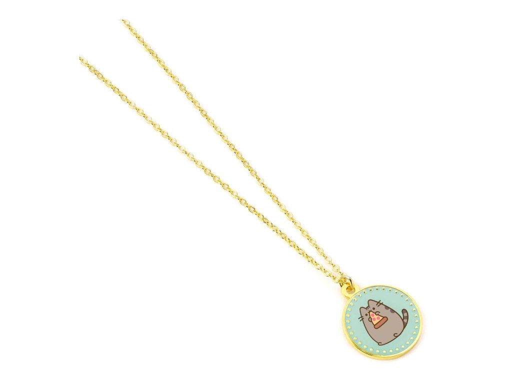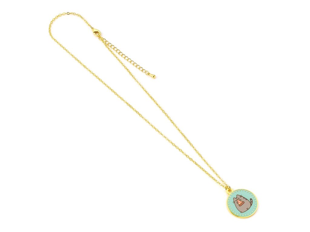 Díszítse magát kedvenc animált cicájával, ezzel a gyönyörű kék zománc és aranyszínű nyaklánccal! Az aranyos kerek medál, melyen Pusheen, a macska kedvenc ételét, a pizzát élvezi, tökéletes darab, hogy kimutasd iránta érzett szeretetedet. A 40 cm-es lánccal és hosszabbítóval ellátott nyaklánc minden 14 éves és idősebb Pusheen-rajongó számára kötelező darab. A hivatalosan engedélyezett ékszerkollekció része - Cinkötvözet / zománc medál - Cinkötvözet / zománc nyaklánc 45cm.Kiegészítő paraméterek