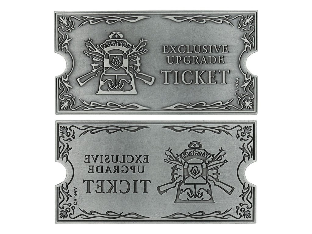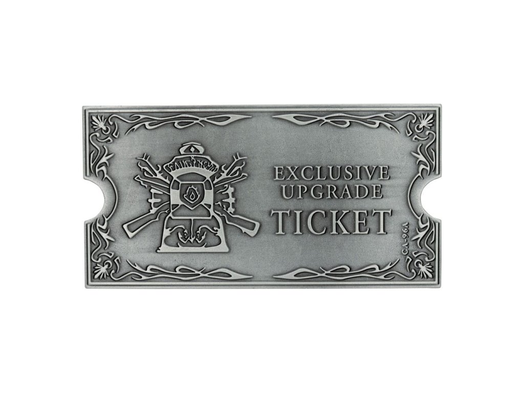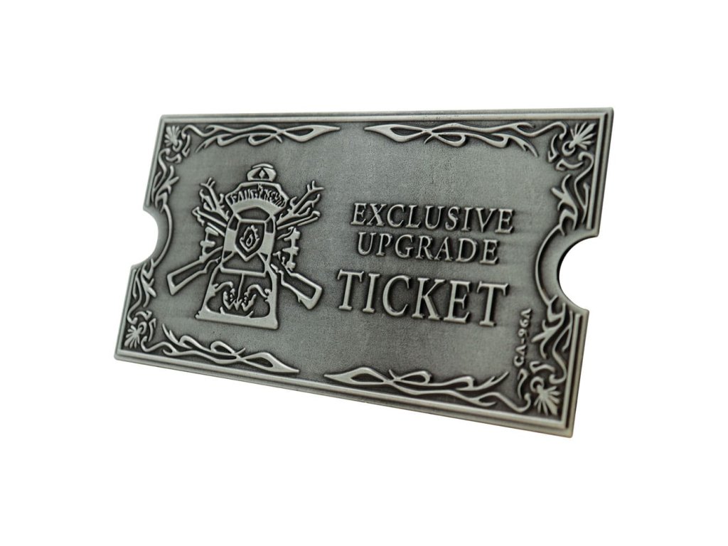 Itt az ideje, hogy fejleszd a fegyvered. A Resident Evil 4-ben 23 exkluzív frissítőjegyet vásárolhatsz DLC-ként, és ez a replika erősen dombornyomott dizájnnal rendelkezik, és tartalmazza az exkluzív frissítőjegy művészi ábrázolását. A Resident Evil 4 eredeti megjelenési évének tiszteletére világszerte 2005 darabra limitálták. Minden jegy egyedi számozással van ellátva a hátoldalán, és egy bemutatóállványt is tartalmaz - Hivatalos licenc - 2005-re limitálva - Egyedi számozással a hátoldalon - Erősen dombornyomott fém - Tartalmaz egy bemutatóállványt.Kiegészítő paraméterek