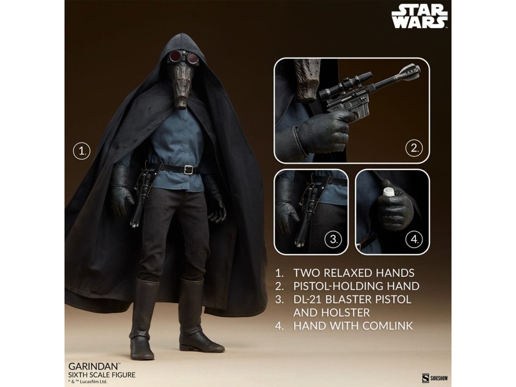 A Sideshow bemutatja a hatodik Garindan™ akciófigurát. Ez a hivatalosan engedélyezett Star Wars™ gyűjtői figura készen áll arra, hogy információkat gyűjtsön a gyűjteményedről.Ez egy olyan szakma, amiért érdemes benne lenni! A rejtélyek és árnyak közé burkolózó Garindan nevű kubász Mos Eisley kikötőjében kúszik a legnagyobb titkok után kutatva ... és a legtöbbet ajánlót. Aki többet szeretne megtudni ellenségeiről, annak Garindan jellegzetes fekete köpenyét, kerek szemüvegét és hosszú, fémesen szürke orrát kell felkutatnia. Az ő felülmúlhatatlan kémkedési képességeivel a galaxisban egyetlen titkos információ sem marad sokáig rejtve.Ez a teljesen csuklós Star Wars-figura a Remény™ figurája által inspirált, jól pózolható és részletesen kidolgozott ruházatú. Kiterjedt jelmeze fekete csuklyás köpenyt, köpenyt és inget tartalmaz. Garindan tovább homályosítja személyazonosságát olyan kiegészítőkkel, mint a sötét öv, a hozzá illő csizma és a maszkos arckép a hozzáerősített szemüveggel. A figura két pár szabad kézzel is rendelkezik, valamint alternatív kezekkel, amelyekkel Garindan a blasterét vagy a kommunikátorát tartva pózolhat - elvégre egy mesterkémnek mindig készen kell állnia arra, hogy alkalmazkodjon a helyzethez, ahogy az kibontakozik. a Garindan hatodik akciófigura a Sideshow Trash & Villains kollekciójának legújabb tagja, amely egy messzi-messzi galaxisból hozza el kedvenc gonosztevőidet a hozzád legközelebbi űrkikötőbe. Légy résen, hogy még több hírhedt karaktert találj ebben a veszélyesen imádnivaló, limitált kiadású gyűjtőfigurákból álló sorozatban. a Sideshow hatodik Garindan akciófigurája még ma utat tör magának a Star Wars polcára!Kiegészítő paraméterek