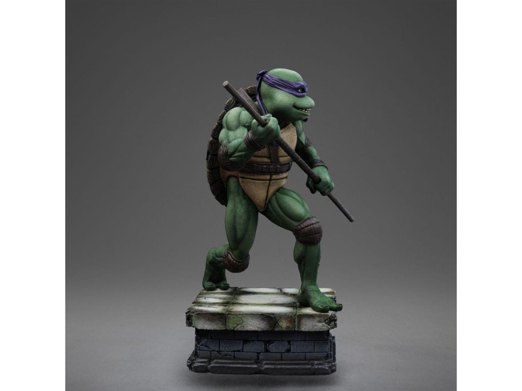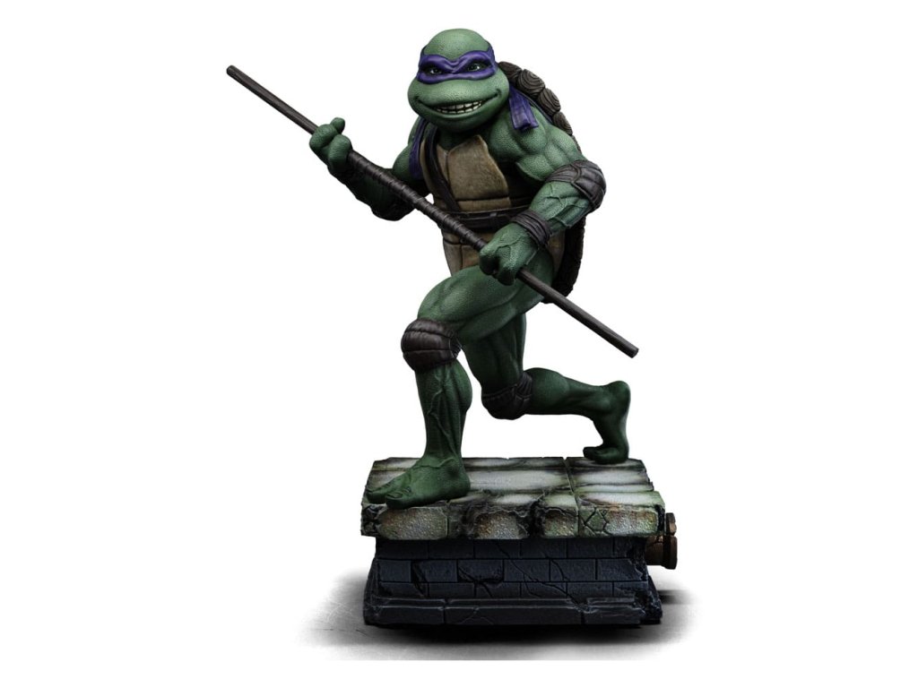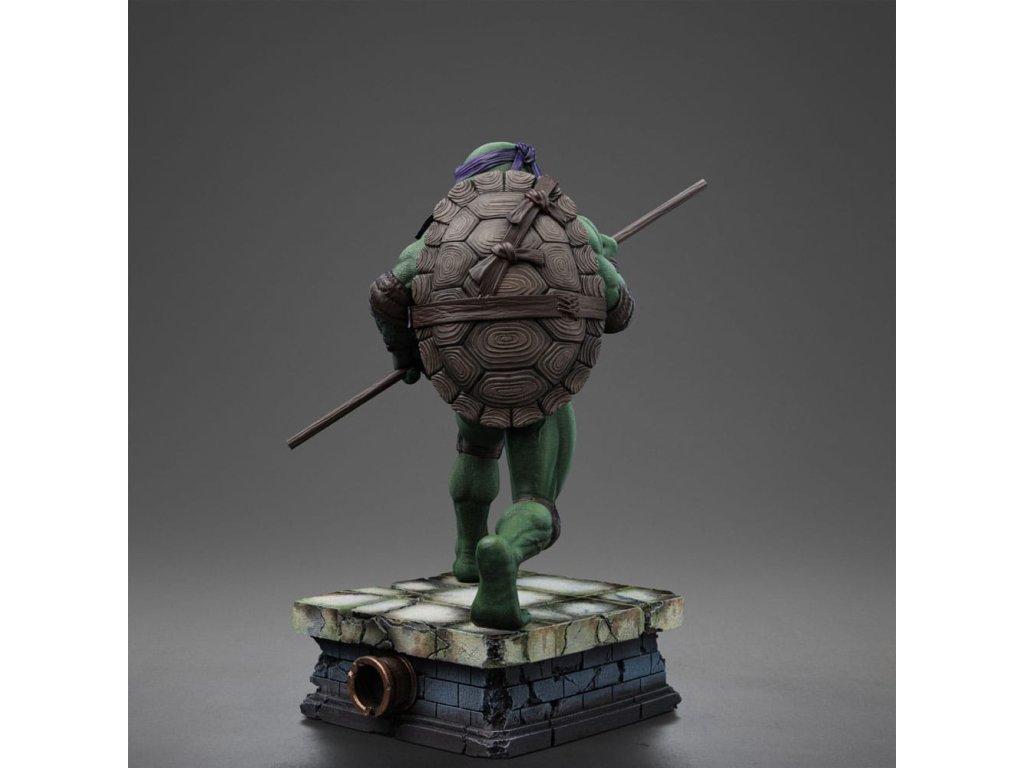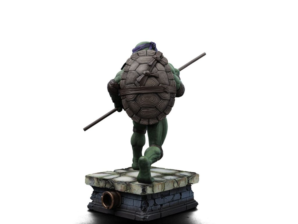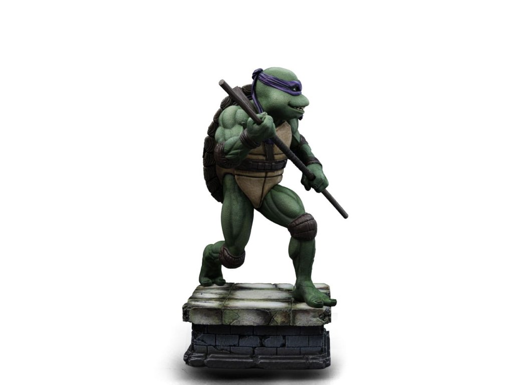 Az Iron Studios új szobrot hoz a TMNT tudósáról és feltalálójáról. Lila kendőjével, a könyökén és térdén barna párnával, valamint a teste előtt tartott Bo botjával, jól fejlett tudományos intellektusával és a gyermekkora óta tartó többéves ninjutsu edzéssel kombinálva félelmetes harcos. Ironikus mosollyal az arcán ő a legélesebb felfogású és legintelligensebb a testvérei közül, de a körülményektől függően jó csínytevő is tud lenni. A csatornák folyosóitól, ahol a főhadiszállása található, egészen New York legmagasabb felhőkarcolóinak tetejéig ő és családja igazságot szolgáltat, harcolva az e világból és a túlvilágról érkező fenyegetésekkel. A technikában való természetes jártasságával az Iron Studios bemutatja a "Donatello - Ifjúsági mutáns nindzsa teknőcök film - Művészi méretarány 1/10" szobrot, a csoport kreatív zsenijét, feltalálóját és részletorientált tagját, aki a csoport technikai kütyüinek és járműveinek megalkotásáért felelős. A Kevin Eastman és Peter Laird által a képregényekben megalkotott Tini Mutáns Nindzsa Teknőcök (Teenage Mutant Ninja Turtles, TMNT) az 1980-as években fenomenális sikert aratott, multimédiás franchise-zá nőtte ki magát, és világszerte rajongók légióira tett szert. A négy fiatal, emberi vonásokkal rendelkező, mutáns teknőcből álló, genetikailag a Mutagena vagy Ooze nevű viszkózus anyaggal módosított testvérek egy Splinter nevű antropomorf patkány formájában szerezték meg apafigurájukat és Sensei mesterüket, aki olasz reneszánsz művészekről nevezte el őket. New York-i otthonuk és bázisuk egy csatornahálózat, ahol nappal rejtve maradnak, éjszaka pedig küldetéseiket végzik. Legnagyobb ellenségük Shredder, a Foot klán vezetője. Steve Barron rendező az 1990-es Ifjúsági mutáns nindzsa teknősök című független filmben mutatja be Splinter és a teknősök eredeti történetét, első találkozásukat April O'Neil riporterrel és Casey Jones önkéntessel, valamint első összecsapásukat a gonosz Shredderrel és bűnöző nindzsacsoportjával, a Foot Clan-nal. Donatello, akit testvérei Don vagy Donnie néven ismernek, a csoport tudósa, feltalálója, mérnöke és technológiai zsenije. Donatello lila maszkot visel és egy Bo botot tart a kezében, és vitathatatlanul ő a legkevésbé erőszakos a csoportból, aki inkább a tudását használja a konfliktusok megoldására, de sosem habozik megvédeni a testvéreit. Nevét a firenzei reneszánsz művész és szobrász, Donatello (Donato di Niccolò di Betto Bardi) ihlette. Méretek: 18 x 14,5 x 10 cm.Kiegészítő paraméterek