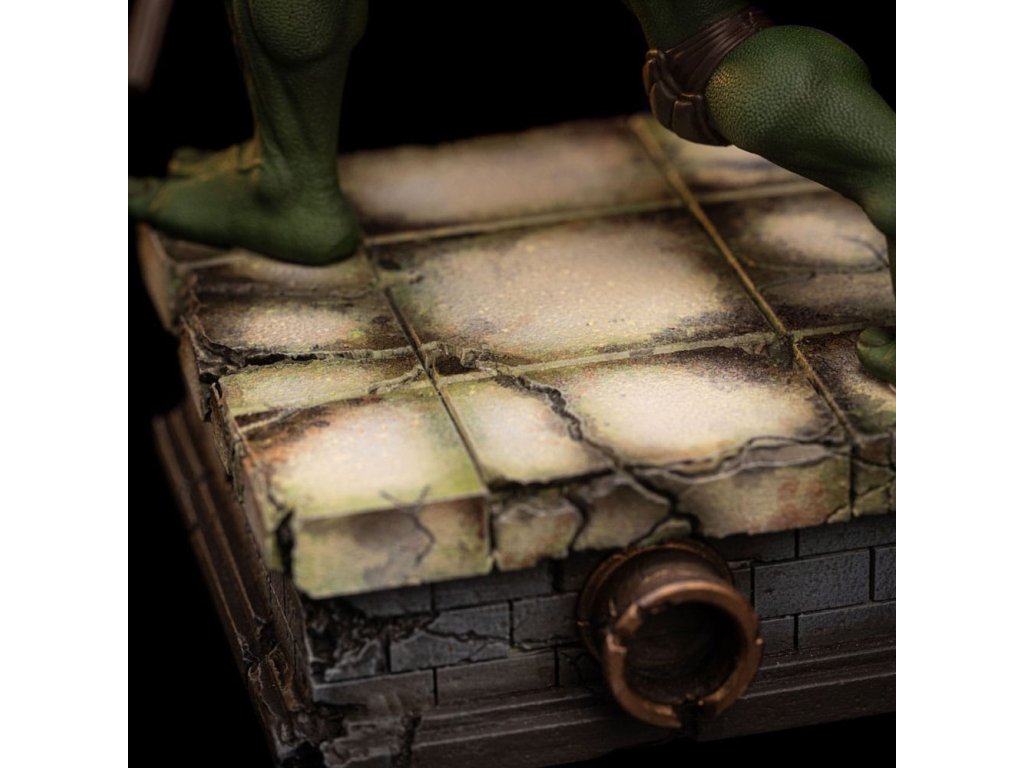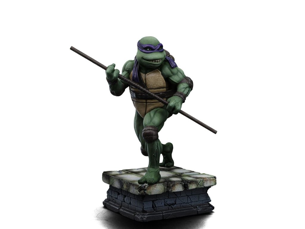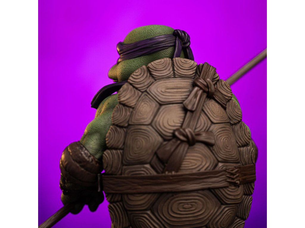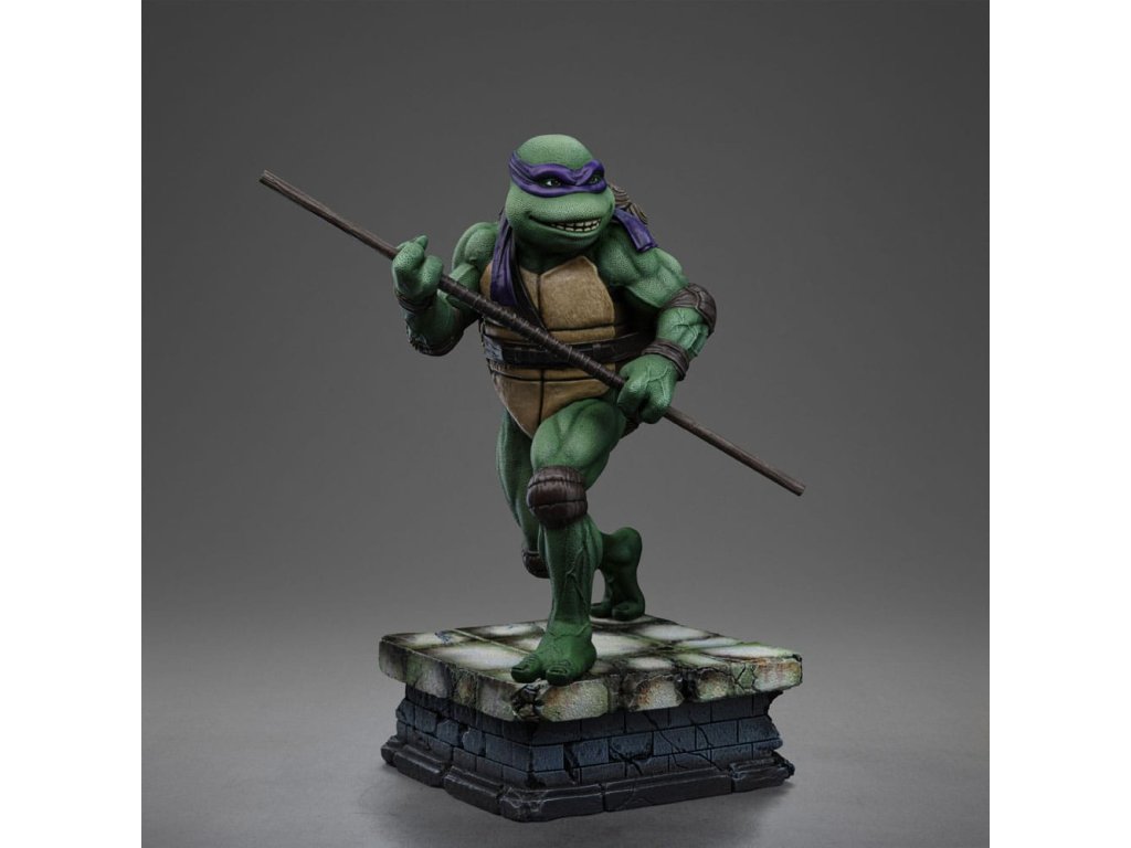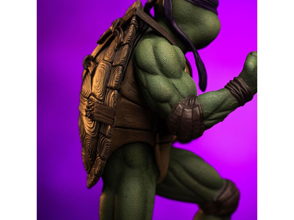 Az Iron Studios új szobrot hoz a TMNT tudósáról és feltalálójáról. Lila kendőjével, a könyökén és térdén barna párnával, valamint a teste előtt tartott Bo botjával, jól fejlett tudományos intellektusával és a gyermekkora óta tartó többéves ninjutsu edzéssel kombinálva félelmetes harcos. Ironikus mosollyal az arcán ő a legélesebb felfogású és legintelligensebb a testvérei közül, de a körülményektől függően jó csínytevő is tud lenni. A csatornák folyosóitól, ahol a főhadiszállása található, egészen New York legmagasabb felhőkarcolóinak tetejéig ő és családja igazságot szolgáltat, harcolva az e világból és a túlvilágról érkező fenyegetésekkel. A technikában való természetes jártasságával az Iron Studios bemutatja a "Donatello - Ifjúsági mutáns nindzsa teknőcök film - Művészi méretarány 1/10" szobrot, a csoport kreatív zsenijét, feltalálóját és részletorientált tagját, aki a csoport technikai kütyüinek és járműveinek megalkotásáért felelős. A Kevin Eastman és Peter Laird által a képregényekben megalkotott Tini Mutáns Nindzsa Teknőcök (Teenage Mutant Ninja Turtles, TMNT) az 1980-as években fenomenális sikert aratott, multimédiás franchise-zá nőtte ki magát, és világszerte rajongók légióira tett szert. A négy fiatal, emberi vonásokkal rendelkező, mutáns teknőcből álló, genetikailag a Mutagena vagy Ooze nevű viszkózus anyaggal módosított testvérek egy Splinter nevű antropomorf patkány formájában szerezték meg apafigurájukat és Sensei mesterüket, aki olasz reneszánsz művészekről nevezte el őket. New York-i otthonuk és bázisuk egy csatornahálózat, ahol nappal rejtve maradnak, éjszaka pedig küldetéseiket végzik. Legnagyobb ellenségük Shredder, a Foot klán vezetője. Steve Barron rendező az 1990-es Ifjúsági mutáns nindzsa teknősök című független filmben mutatja be Splinter és a teknősök eredeti történetét, első találkozásukat April O'Neil riporterrel és Casey Jones önkéntessel, valamint első összecsapásukat a gonosz Shredderrel és bűnöző nindzsacsoportjával, a Foot Clan-nal. Donatello, akit testvérei Don vagy Donnie néven ismernek, a csoport tudósa, feltalálója, mérnöke és technológiai zsenije. Donatello lila maszkot visel és egy Bo botot tart a kezében, és vitathatatlanul ő a legkevésbé erőszakos a csoportból, aki inkább a tudását használja a konfliktusok megoldására, de sosem habozik megvédeni a testvéreit. Nevét a firenzei reneszánsz művész és szobrász, Donatello (Donato di Niccolò di Betto Bardi) ihlette. Méretek: 18 x 14,5 x 10 cm.Kiegészítő paraméterek