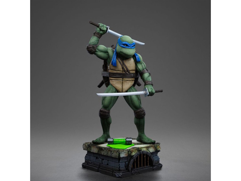 Az Iron Studios új szobrot hoz a Teknőc testvérek vezetőjéről, az 1990-es film alapján! A földalatti galériákban a hős antropomorf mutáns teknősbéka a születése óta a ninjutsu művészetére kiképzett testvéreivel együtt feszíti izmait, kék katonai maszkban és barna könyök- és térdvédőbe öltözve, miközben szorosan tartja két katanáját, az ikonikus fegyvereit, amelyek a csatában a védjegyévé válnak. A lábánál egy tartály van, amely egy Ooze nevű mutagén anyagot tartalmaz, egy zöld, viszkózus anyagot, amely megváltoztatja minden organizmus genetikai szerkezetét, amellyel kapcsolatba kerül, és amely felelős a mutációért, amely őt és testvéreit olyanná változtatta, amilyenek, és kész bármit megtenni azért, hogy ez az anyag ne kerüljön rossz kezekbe. Az Iron Studios bemutatja a "Leonardo - Teenage Mutant Ninja Turtles Movie - Art Scale 1/10" szobrot, amely kiegészíti a Ninja Turtles csoportot, és New York város mutáns védelmezőinek rettenthetetlen és kiemelkedő terepparancsnokát ábrázolja. A Kevin Eastman és Peter Laird által írt Tini Mutáns Nindzsa Teknőcök (Teenage Mutant Ninja Turtles, TMNT) képregény az 1980-as években fenomenális sikert aratott, multimédiás franchise-zá nőtte ki magát, és világszerte rajongók légióit nyerte el. A négy fiatal, humanoid vonásokkal rendelkező, mutagén vagy Ooze néven ismert viszkózus anyaggal genetikailag módosított mutáns teknőcből álló csoport testvérei egy Splinter nevű antropomorf patkány személyében szerezték meg apafigurájukat és senseijüket, aki az olasz reneszánsz művészekről nevezte el őket. New York-i otthonuk és bázisuk a csatornában van, ahol nappal rejtőzködnek, éjszaka pedig küldetéseikre indulnak. Legnagyobb ellenségük Shredder, a Foot klán vezetője. Az 1990-es Tini mutáns nindzsa teknőcök című független film Steve Barron rendezésében mutatja be Splinter és a teknőcök eredeti történetét, első találkozásukat April O'Neil riporterrel és Casey Jones igazságosztóval, valamint első összecsapásukat a bűnöző Shredderrel és bűnöző nindzsacsoportjával, a Foot Clan-nal. Leonardo, akit testvérei csak Leónak hívnak, a genetikailag módosított teknősök egy csoportjának vezetője. Taktikus, bátor és hűséges tanítványa a sensei-jének, Leonardo kék maszkot visel, és két hosszú és éles kardot (katanák és ninja-tok összevont változata) forgat. Mint a legidősebb a négy közül, gyakran ő a felelős a testvéreiért, ami általában konfliktushoz vezet Raffaellel. Nevét az olasz polihisztor, festő, mérnök, feltaláló, író, anatómus és szobrász Leonardo da Vinci ihlette. A figura az 1990-es film alapján készült. Méret: 21,5 x 12 x 11 cm.Kiegészítő paraméterek