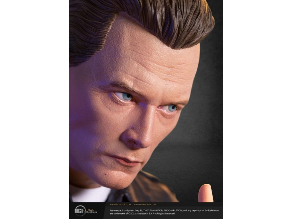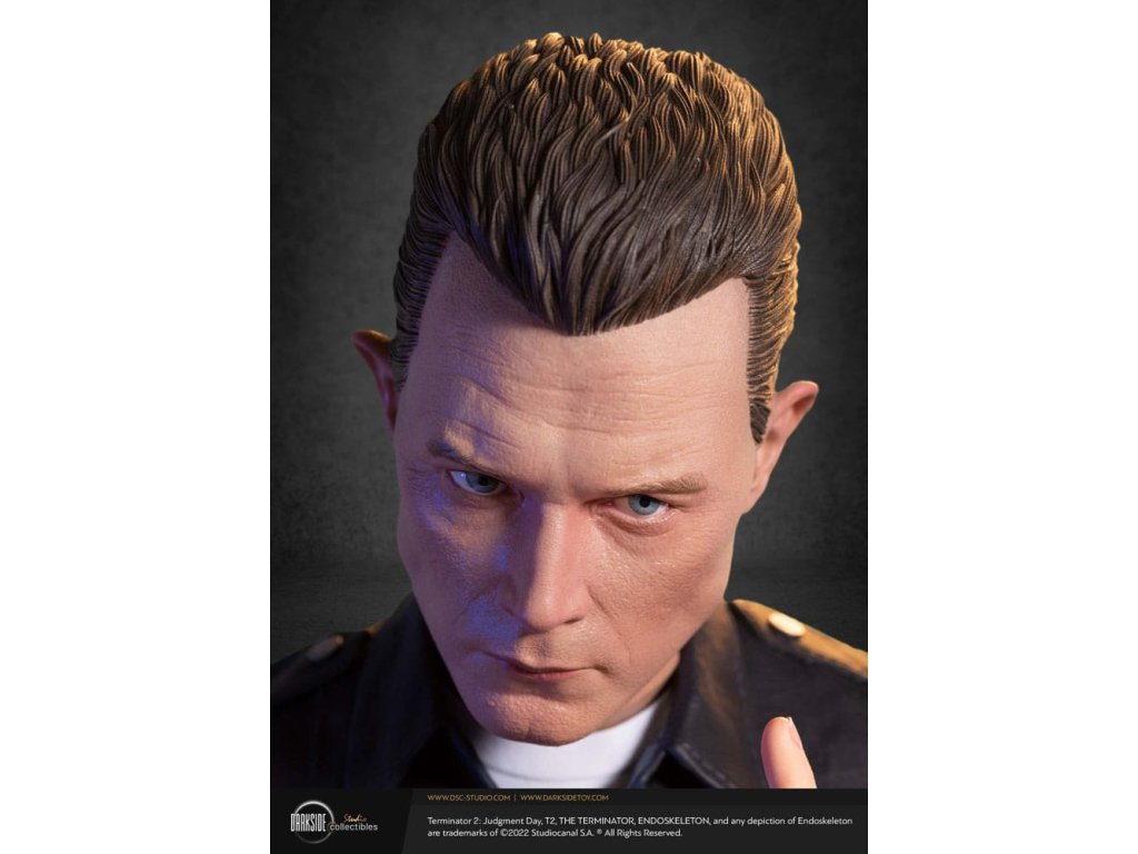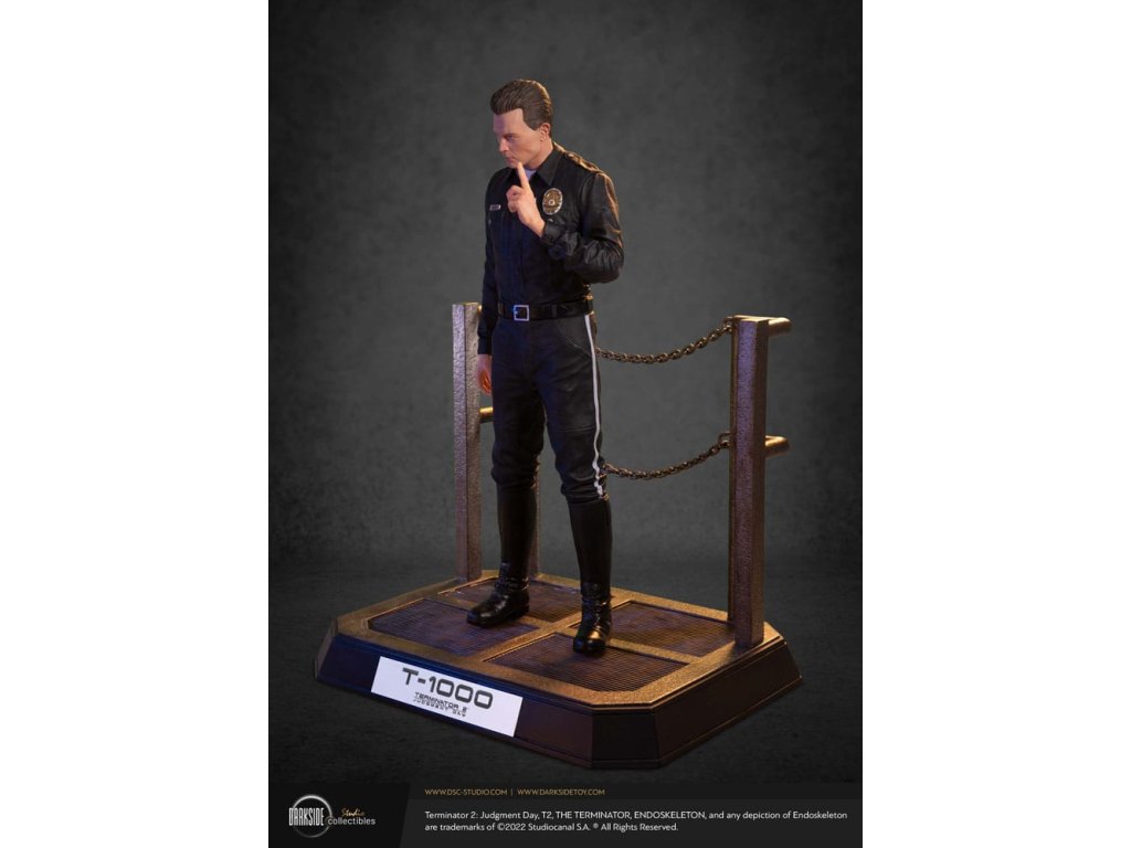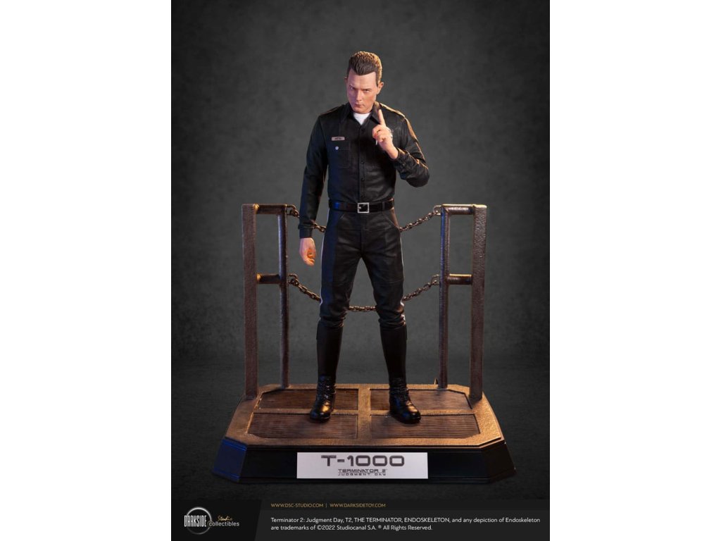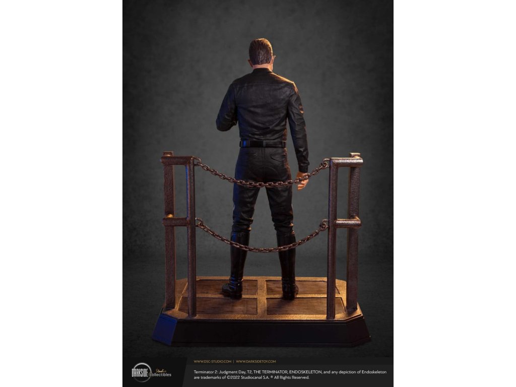 A "Terminator 2: Az ítélet napja" című sci-fi klasszikus 30. évfordulója alkalmából a Darkside Collectibles Studio TM büszkén mutatja be a T-1000 30th Anniversary prémium szobrot. A Robert Patrick által megformált T-1000-es a Sarah Connor szobor után a T2 30. évfordulós gyűjtemény második tagja. Robert Patrick képmása szakértő módon lett reprodukálva egy lenyűgöző, 1/3 méretarányú, kézzel faragott szoborban, amely filmszerűen pontos arckifejezéseket tartalmaz, részletes ráncokkal és valósághű bőrszerkezettel. A szobor a T-800-as, a T-1000-es és Sarah Connor végső csatáját ábrázolja a filmben. A T-1000-es szobor kézzel van megformálva, hogy pontosan visszaadja a filmbeli ikonikus "Nem" gesztus filmes hangulatát. A pontos filmes ábrázolás második lehetőségét a bal kéz adja, amely egy hosszú, éles ujjat ábrázol, amelyet arra terveztek, hogy Sarah Connor vállába szúrjon. A T-1000 pontos filmes formában egy részletesen kidolgozott sötétkék LAPD egyenruhában jelenik meg, amely nagy felbontású textúrákat és varrásokat, egy LAPD jelvényt, egy Austin névtáblát és egy ingtollat tartalmaz. A nadrág varrása mentén húzódó fehér csík és a kézzel faragott csizma teszi teljessé a lélegzetelállító, hiperrealisztikus, kézzel faragott jelmezt. Egy rendkívül részletes fényalap teszi teljessé a lenyűgöző, filmszerűen pontos ábrázolást. A szobor a Studio Canal felügyelete alatt készült, rendkívül részletes és pontos, garantálva minden Terminátor-rajongó elégedettségét. Korlátozott példányszámban, 350 darabra. A termék méretei: 70 x 48 x 38 cm.Kiegészítő paraméterek