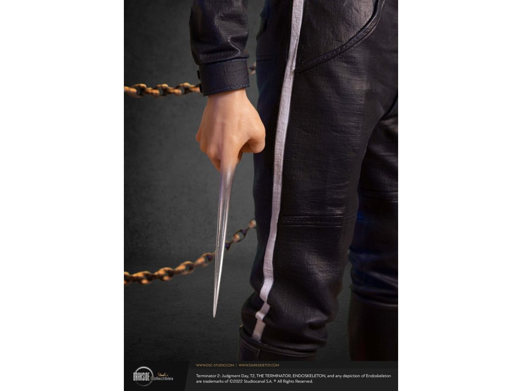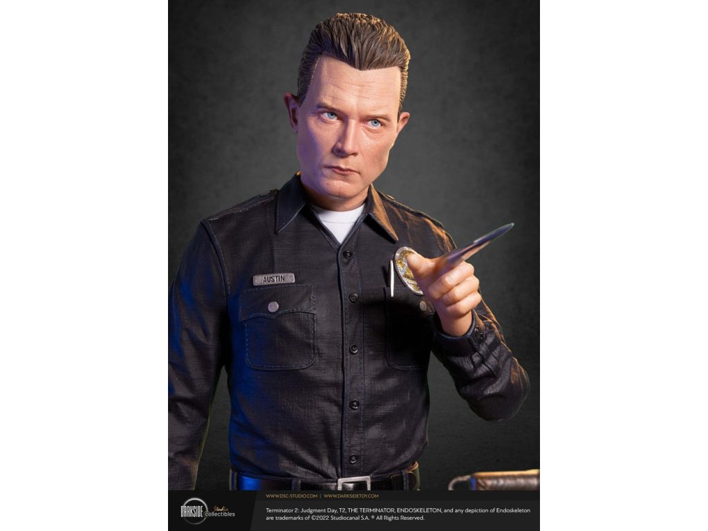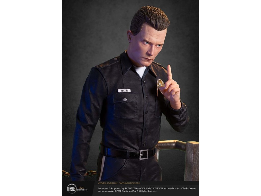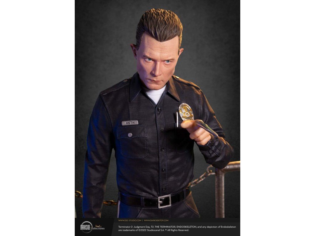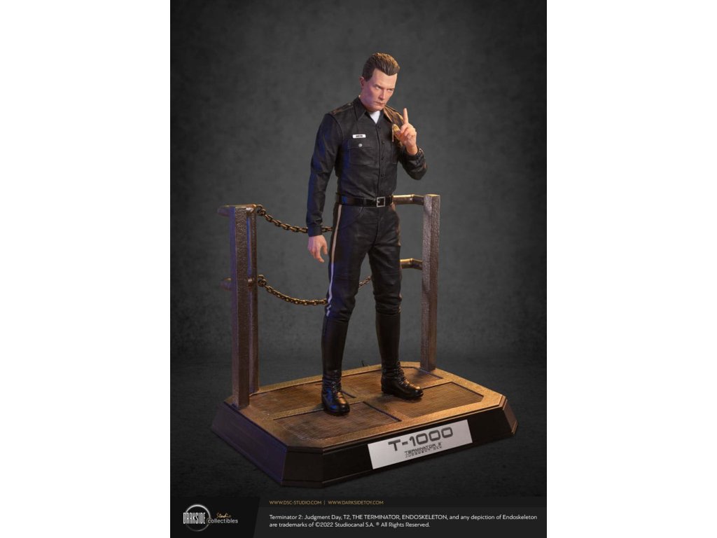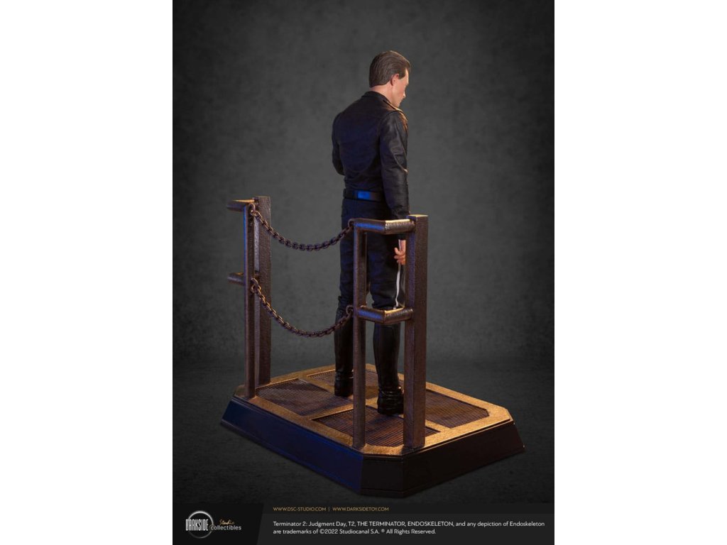 A "Terminator 2: Az ítélet napja" című sci-fi klasszikus 30. évfordulója alkalmából a Darkside Collectibles Studio TM büszkén mutatja be a T-1000 30th Anniversary prémium szobrot. A Robert Patrick által megformált T-1000-es a Sarah Connor szobor után a T2 30. évfordulós gyűjtemény második tagja. Robert Patrick képmása szakértő módon lett reprodukálva egy lenyűgöző, 1/3 méretarányú, kézzel faragott szoborban, amely filmszerűen pontos arckifejezéseket tartalmaz, részletes ráncokkal és valósághű bőrszerkezettel. A szobor a T-800-as, a T-1000-es és Sarah Connor végső csatáját ábrázolja a filmben. A T-1000-es szobor kézzel van megformálva, hogy pontosan visszaadja a filmbeli ikonikus "Nem" gesztus filmes hangulatát. A pontos filmes ábrázolás második lehetőségét a bal kéz adja, amely egy hosszú, éles ujjat ábrázol, amelyet arra terveztek, hogy Sarah Connor vállába szúrjon. A T-1000 pontos filmes formában egy részletesen kidolgozott sötétkék LAPD egyenruhában jelenik meg, amely nagy felbontású textúrákat és varrásokat, egy LAPD jelvényt, egy Austin névtáblát és egy ingtollat tartalmaz. A nadrág varrása mentén húzódó fehér csík és a kézzel faragott csizma teszi teljessé a lélegzetelállító, hiperrealisztikus, kézzel faragott jelmezt. Egy rendkívül részletes fényalap teszi teljessé a lenyűgöző, filmszerűen pontos ábrázolást. A szobor a Studio Canal felügyelete alatt készült, rendkívül részletes és pontos, garantálva minden Terminátor-rajongó elégedettségét. Korlátozott példányszámban, 350 darabra. A termék méretei: 70 x 48 x 38 cm.Kiegészítő paraméterek
