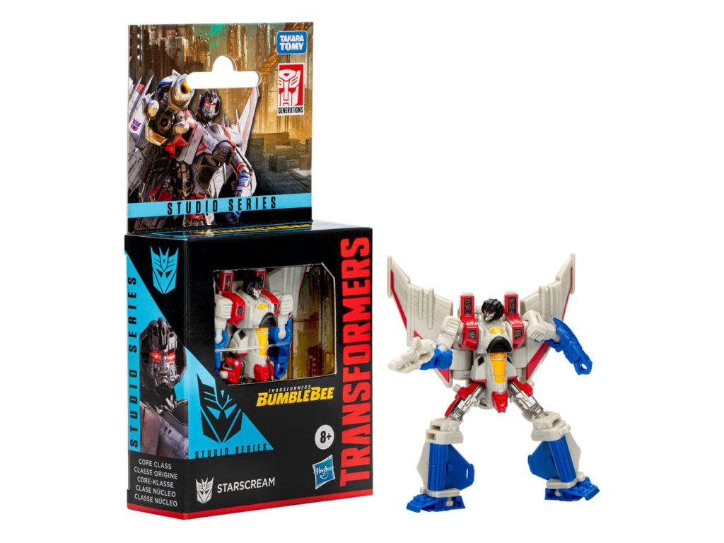 A Transformers Studio Series Core Class Starscream akciófigurával, melyet a Transformers: Bumblebee ihletett, hozd el a nagyvásznon futó Transformers filmek epikus akcióját a gyűjteményedbe! A Transformers Studio Series játékok olyan gyűjthető akciófigurák, amelyek a film által inspirált részletekkel és kiegészítőkkel rendelkeznek. A Studio Series Transformers akciófigurát 14 lépésben alakíthatod át robot módból repülőgép módba, és formázhatod a mellékelt blaster kiegészítővel. Keress további Transformers Studio Series gyűjtőfigurákat, hogy bővíthesd a film ihlette gyűjteményedet (mindegyik külön-külön kapható, a rendelkezésre állás függvényében)!