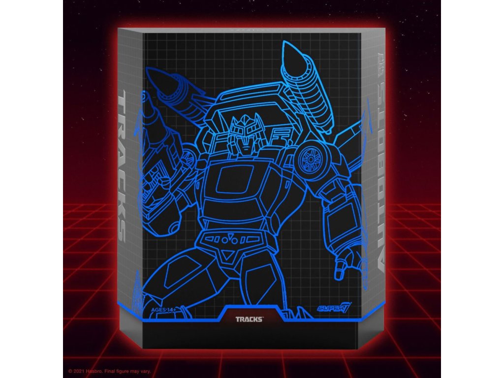 A Tracks teljesen elképesztő! Csak kérdezd meg őt, ő majd elmondja neked! Figyelembe véve, hogy az ő off-robotikus átalakulásai egy sportkocsi ÉS egy vadászrepülőgép, nehéz ellentmondani neki. A Transformers ULTIMATES!!! figura a G1 alapján készült precíziós festéssel, valamint cserélhető fejjel és kezekkel rendelkezik, és 7,5" magas, amikor teljesen fel van szerelve szárnyakkal és rakétákkal. A rajzfilmsorozat és a régi játék által egyaránt inspirált fegyverarzenállal és egyéb kiegészítőkkel ez az Autobot díva a lyukas zsebekig fel van szerelve! Szereted utálni vagy utálod szeretni, nem számít, ő az Autobotok egyik legfontosabb tagja, és tekintve, hogy egykor az életét kockáztatta San Francisco védelmében, Super7 nagyon közel áll a szívünkhöz. Tartozékok:- 2 x cserélhető fej (normál fej, gonosz idegen robotfej)- 6x cserélhető kéz- Tank (régi játék ihlette)- Ion blaster (régi játék ihlette)- Ion blaster (rajzfilmsorozat ihlette)- Hordozható blaster rádióvevő.Kiegészítő paraméterek
