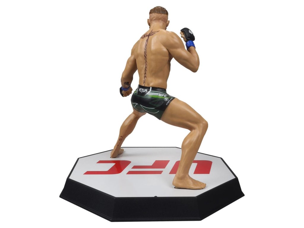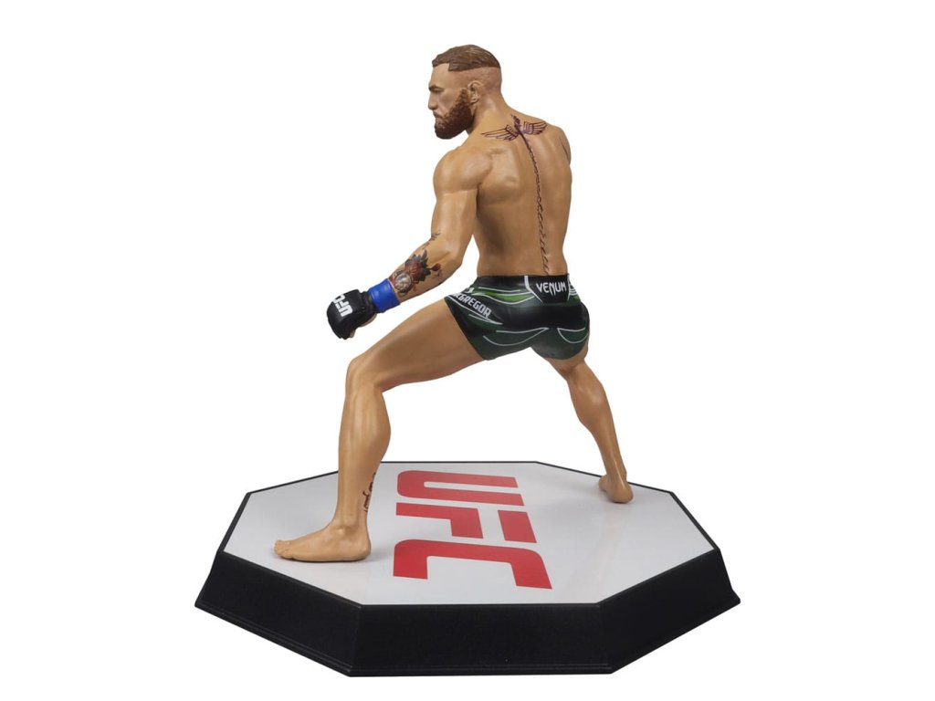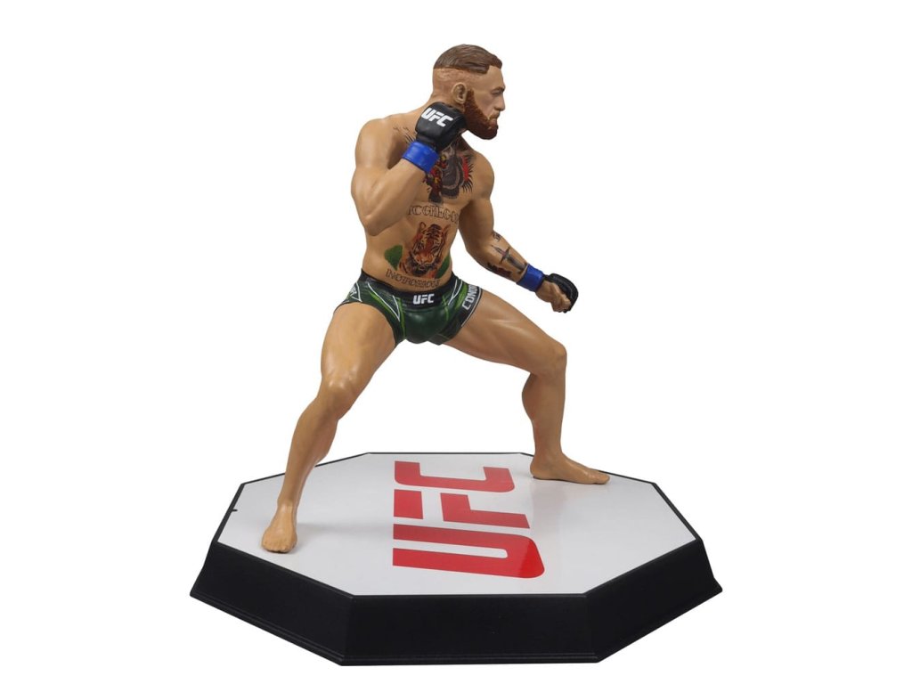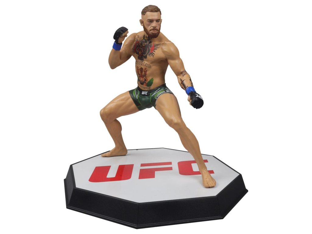 Conor McGregor (UFC) figurája 18 cm. Conor McGregor sikeres korai MMA karrierje után 2013-ban debütált a UFC-ben. McGregor ismert ellentámadó képességeiről, pontos ütéseiről és kiütőerejéről. Ő lett az első UFC harcos, aki egyszerre két súlycsoportban, pehelysúlyban és könnyűsúlyban is UFC bajnoki címet szerzett. Számos rekordot tart, többek között a leggyorsabb győzelmet UFC bajnoki mérkőzésen, a legtöbb egymást követő Performance of the Night díjat a UFC történetében, a UFC első 25 évének legjobb kiütését, és 2015-ben az év harcosának választották. McGregor 2017-ben felkerült a Time magazin 100 legbefolyásosabb ember listájára, 2021-ben a Forbes magazin a világ legjobban fizetett sportolójának nevezte, és úgy tartják, hogy ő az az ember, aki világszerte népszerűsítette a vegyes harcművészeteket és a UFC-t.Kiegészítő paraméterek