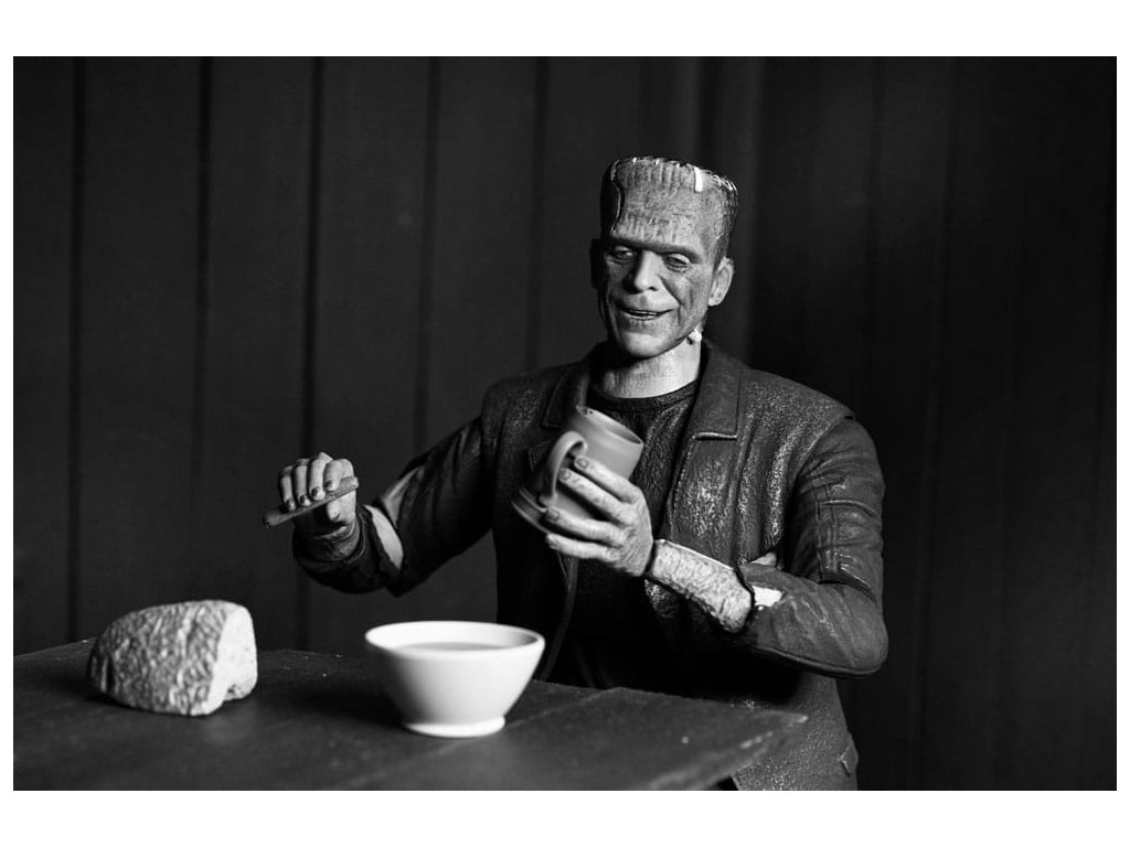 Frankenstein szörnye él! Idézd fel újra az 1935-ös Frankenstein menyasszonya folytatásának ikonikus jeleneteit ezzel a NECA-tól származó végső akciófigurával! Mintha egyenesen a filmvászonról lépett volna elő, ez a figura fekete-fehér díszletekkel és Boris Karloff második szörnyetegét tükröző modellezéssel rendelkezik. A tartozékok között cserélhető fejek és kezek, egy kenyér, egy bögre és egy tál leves is szerepel. Több mint 8 hüvelyk magasságával és 28 artikulációs pontjával ez a figura készen áll arra, hogy csatlakozzon a fekete-fehér Universal Monsters gyűjteményedhez! Elölről nyitható patenttal ellátott, kirakatbarát csomagolóablakban érkezik.Kiegészítő paraméterek