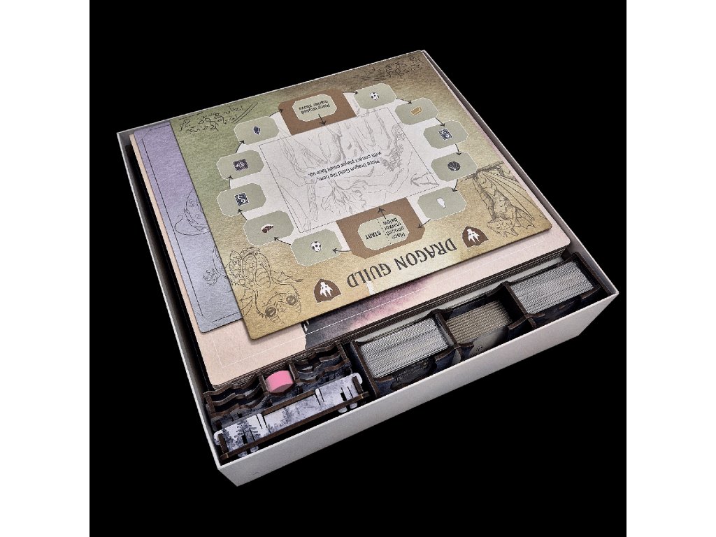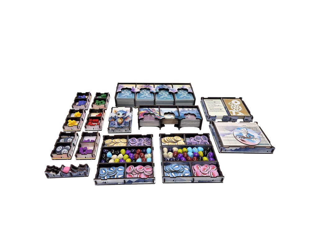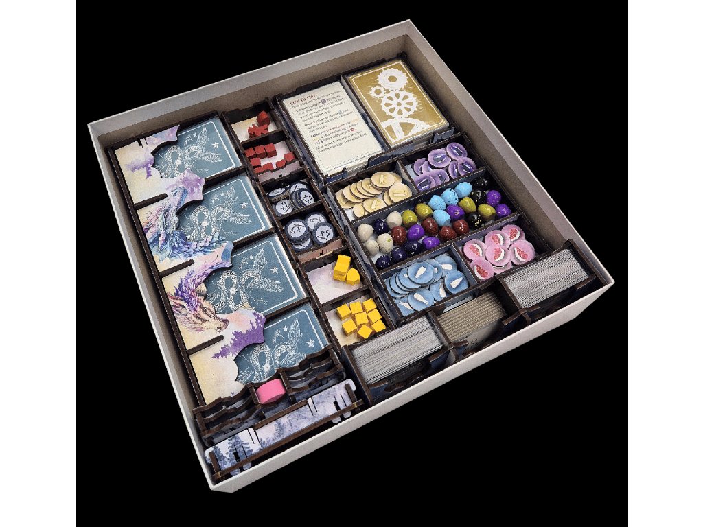 Az On Wings of Dragons társasjáték gyönyörű grafikus betétjének köszönhetően a kártyák és a játékkomponensek rendezetten és rendezetten állnak majd a rendelkezésedre. A betét csomagolt kártyákkal együtt számít. A kiváló minőségű UV-nyomtatás ellenáll a külső hatásoknak. A csomagolásban találsz összeszerelési útmutatót, amelyhez nincs szükség ragasztóra. Az eredeti alkatrészek csak illusztrációként szolgálnak, és nem tartoznak a csomaghoz.Kiegészítő paraméterek