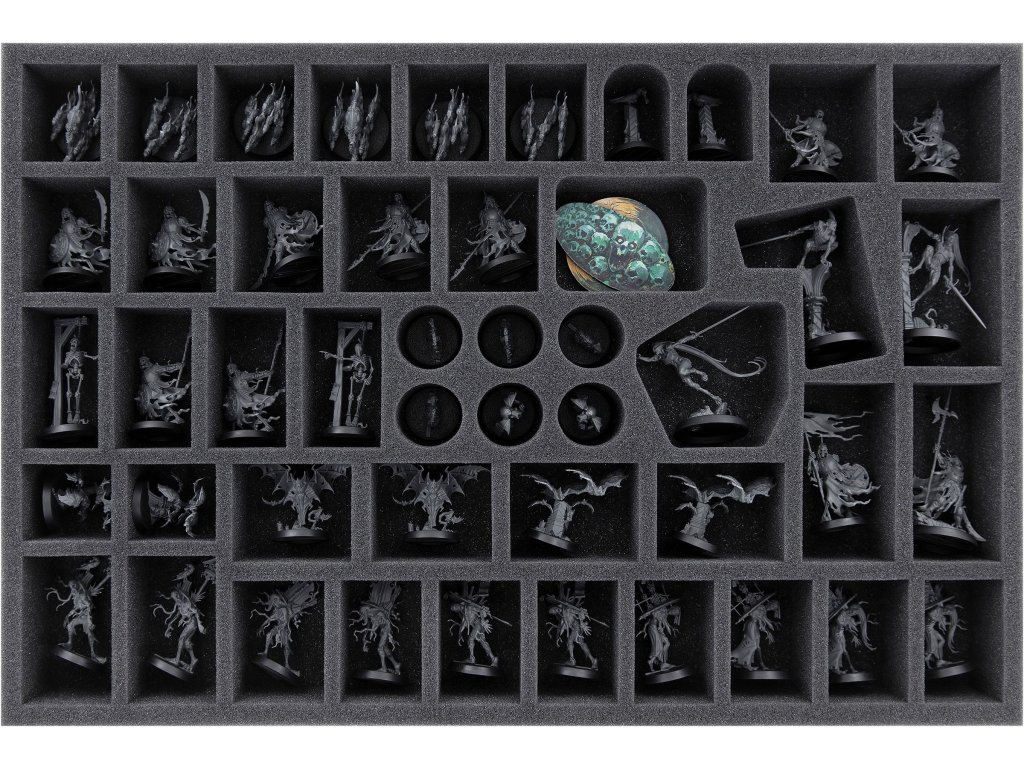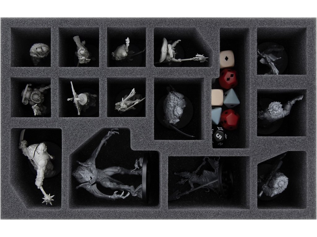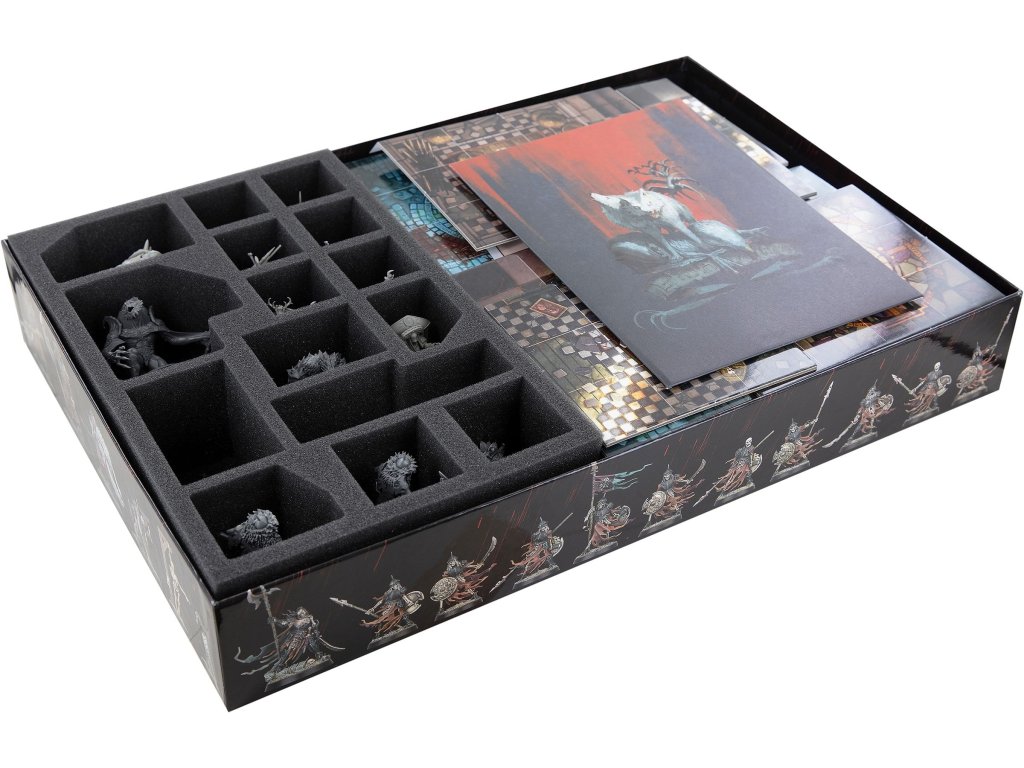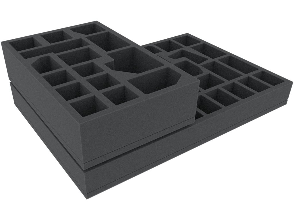 Feldherr habszivacs betét a Warhammer Quest: Curdsed City játékhoz. Méretek: 42,5 28,5 x 11,6 cm. 1 habszivacsos köteg ellenséges modellekhez, sírkövekhez, tárgyminiatűrökhöz plusz kiegészítőkhöz (ATMFCW042BO) 1 habszivacsos köteg hős és ellenséges modellekhez plusz kiegészítőkhöz (GBMFCX070BO) 2 habszivacs borító 1 kék Feldherr Flex Cross Band (L méret).Kiegészítő paraméterek