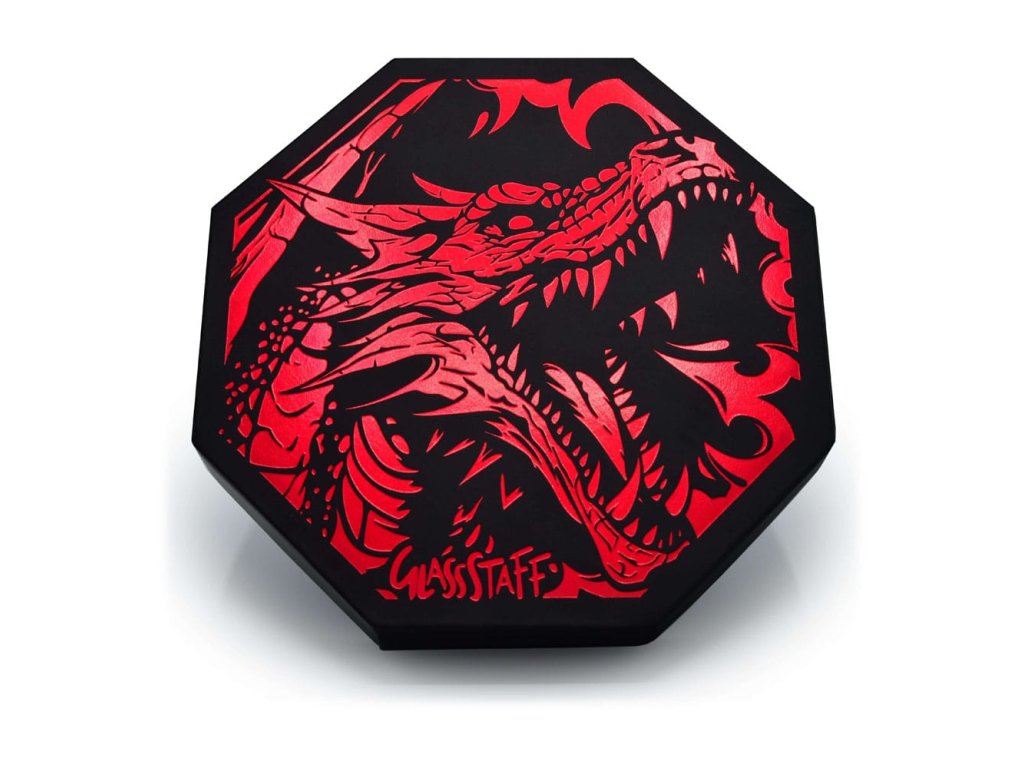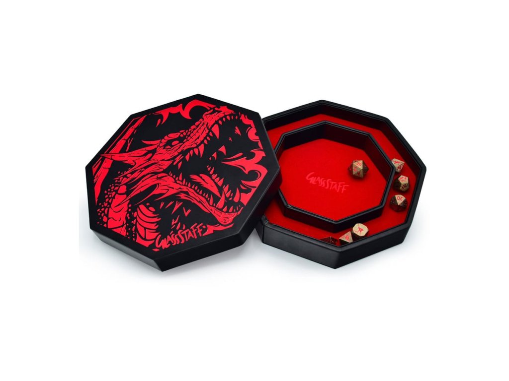 Engedd el a sárkányt a prémium GlassStaff Dice Arénával! Biztonságosan védi az akár 14 kockakészletet, és egyedi holografikus grafikát jelenít meg az elülső oldalon! Termékleírás: Fokozd a játékszekcióidat a fantasztikus Dice Arena-nkkal, amelyet azoknak terveztünk, akik szeretnek vigyázni a kockáikra, és gyakran csatába küldik őket! Miért fogod szeretni: - Holografikus sárkány-esztétika: Válassz éles színválasztékból, mindegyikben egy-egy holografikus sárkány embléma őrzi a dobásaidat - Plüss csatatér: A plüss bársony védi a kockáidat, és biztosítja a csendes, tisztességes dobásokat, amelyek megőrzik értékes készleteid épségét - Tágas aréna: A 9 hüvelyk átmérőjű arénában bőven van hely a kockáid elszabadítására, miközben akár 14 készletet is tárolhatsz. Működő művészet: - Fedél és magasított élek: A biztonságos fedél extra felső rétegként szolgál, míg a magasított élek biztonságosan tárolják kockáit - Könnyű hordozhatóság: A GlassStaff kockaarénát a mobilitás szem előtt tartásával tervezték, és magával utazik, hogy készen álljon a csatára, bárhová is visz a küldetése - Megjelenítés és tárolás: Nem csak dobásra - mutasd ki büszkén kockáidat a kiemelt területen, és emeld ki bonyolult mintáikat. Méretek: - 23 cm széles - 4,5 cm magas - Nagyobb készletekhez illeszkedik - A peremben akár 6, középen pedig 8 készlet is elfér. A GlassStaff kockaaréna harcosoknak, varázslóknak és vándoroknak készült, nem csak egy eszköz, hanem egy központi elem, amely megragadja a játék lényegét. Fedezd fel kockáidat, parancsolj sárkányaidnak, és hódítsd meg kampányaidat pompásan.Kiegészítő paraméterek
