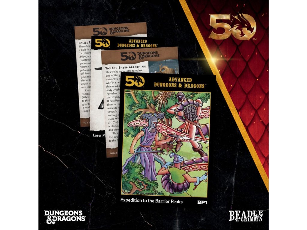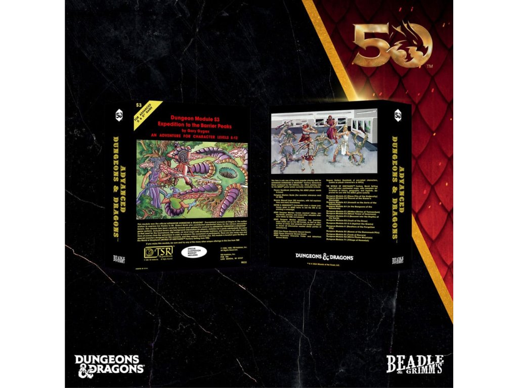 Ünnepelj hat legendás Dungeons & Dragons kalandot ezekkel az 50. évfordulós limitált kiadásokkal! Minden Classic Modules kockakollekció a következőket tartalmazza: - Egy plüss bélésű, könyv alakú gyűjtődoboz (mérete 4,6 hüvelyk széles x 6 hüvelyk magas x 1,75 hüvelyk mély) - Egy hét gyantakockából álló alapkészlet - Egy exkluzív, nagy, 20 oldalas kocka, amelyet úgy terveztek, hogy kiegészítse az egyes kalandokat - Egy két hüvelykes gyűjtői fémérme, amely a kalandnak és a kaland 50. évfordulójának állít emléket. D&D évforduló - Négy gyűjtőkártya az egyes kalandokról és örökségükről szóló grafikákkal és információkkal.