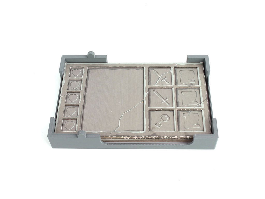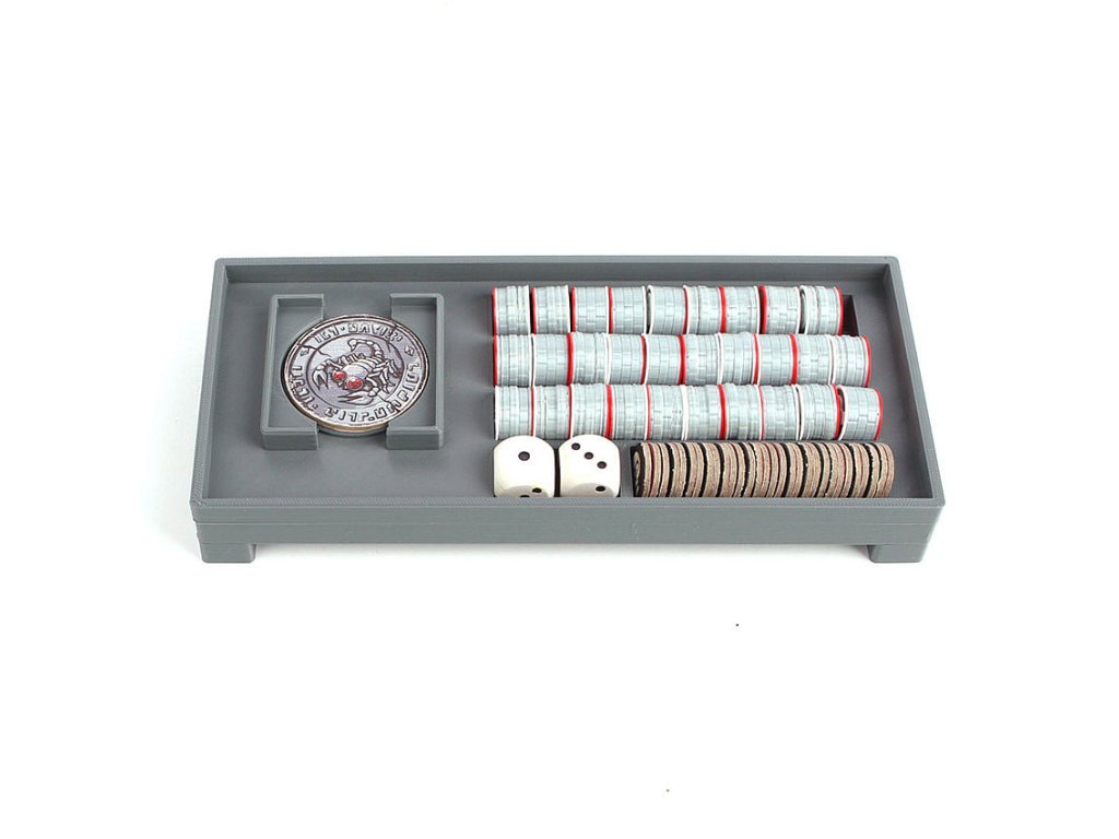 A Karak társasjátékhoz és a Regent bővítményhez tartozó betéttel az összes játékkomponens rendezetten elrendezve lesz. A betét tartalmaz egy tálcát 12 játéklapnak és egy zárható tornyot, amelyből a játékelemek játék közben kényelmesen kivehetők. A betét nem tartalmazza a rácsokat, az életjelzőket és a leltárbővítményeket. 3D nyomtatással készült.Kiegészítő paraméterek