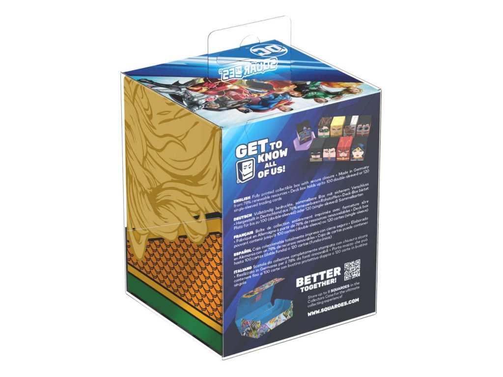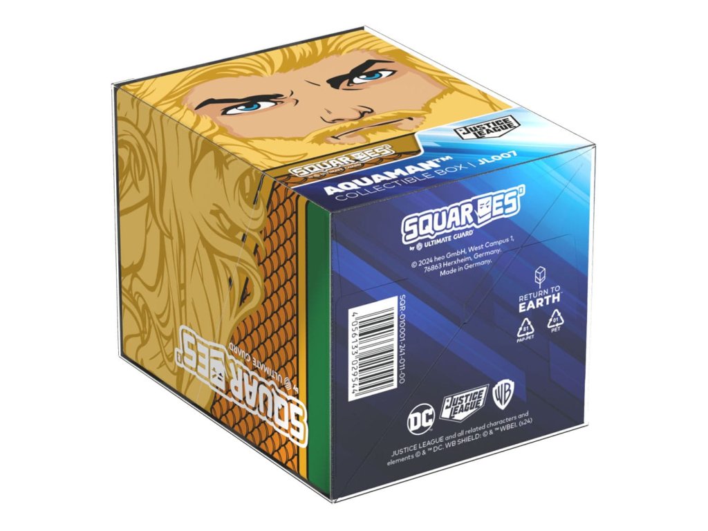 Aquaman™ pontosan látta, hogyan hagytál egy műanyag zacskót a strandon a legutóbbi nyaralásod után. Tegyél hát valamit a karmádért, és szerezz be egy 78%-ban megújuló anyagokból készült Aquaman Squaroe-t! Akár önálló gyűjtőeszközként, akár TCG-kártyadobozként (akár 100 kártyát tartalmazó, dupla védőborítékban): Fedezd fel a DC Justice League™ hőseit és hősnőit négyzet alakban, és ne hagyd ki a gyűjtődobozt, amely tökéletes hely a teljes Squaroe gyűjteményed tárolására - Teljesen nyomtatott gyűjtődoboz biztonságos záródással - Németországban készült 78%-ban megújuló nyersanyagokból - A kártyadobozban akár 100 darab dupla védőborítású vagy 120 darab egyszemélyes védőborítású gyűjtőkártya is elfér - Méretek: 98,5 x 76 x 75 mm.Kiegészítő paraméterek