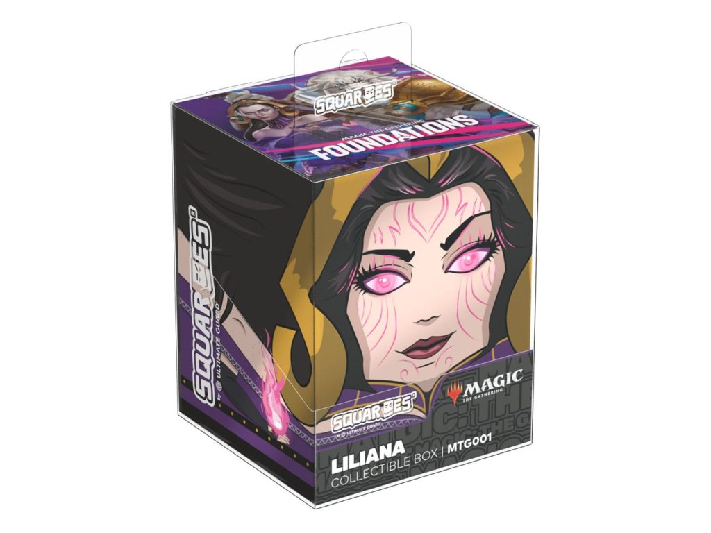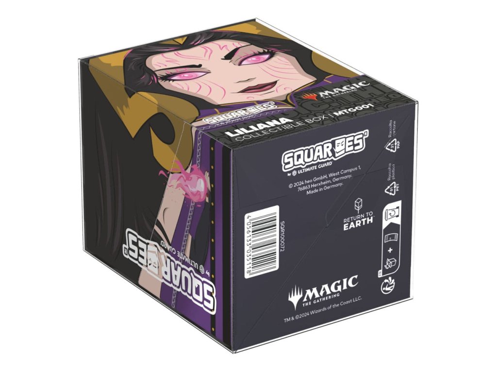 Gyűjtői doboz a pakli, a társasjáték-kiegészítők vagy a gyűjtemények tárolására. A Magic: The Gathering kiadásból származó Liliana Squaroe akár 100 kártyát is befogad dupla védőhüvelyben, ha paklis dobozként használod. A Squaroe 78%-ban megújuló nyersanyagokból készül.